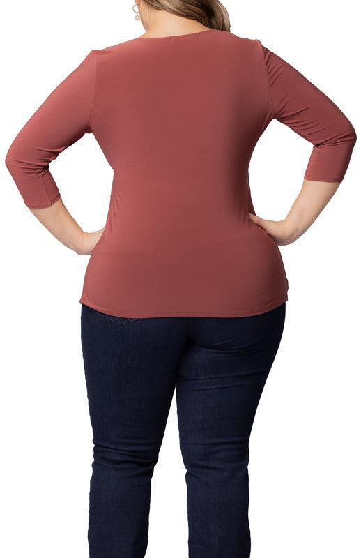 Show off your killer curves in our Femme Fatale Plus Size Faux Wrap Top! An easy pullover design, draped waist, and fitted 3/4 sleeves make this plus size top a closet must-have. This faux wrap blouse is available exclusively in women's plus sizes.
