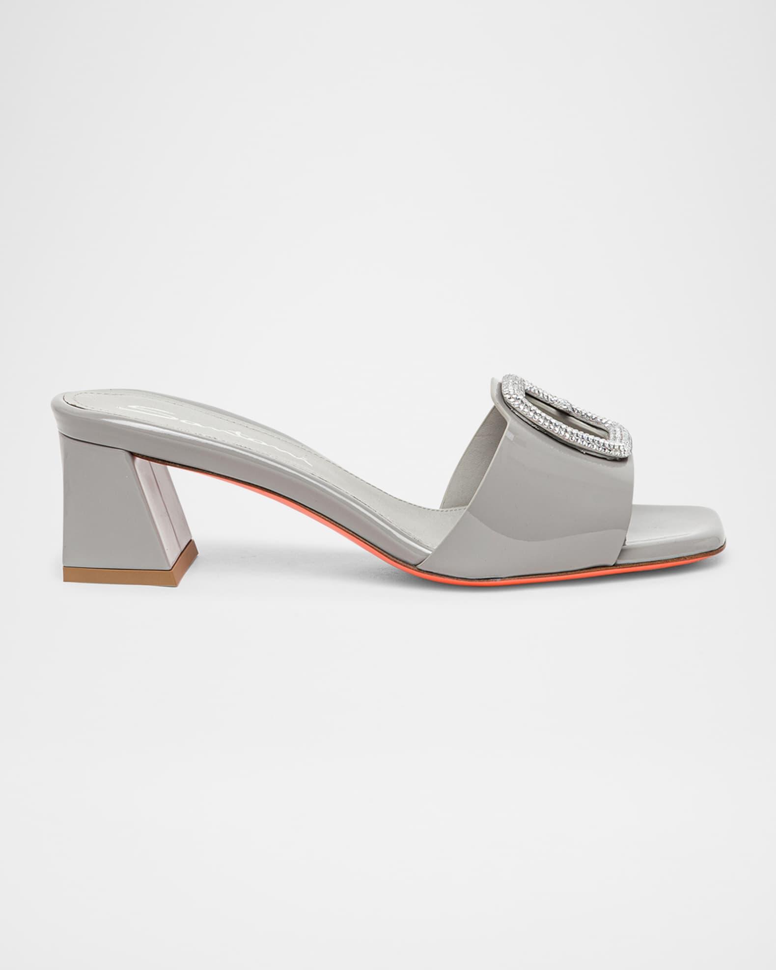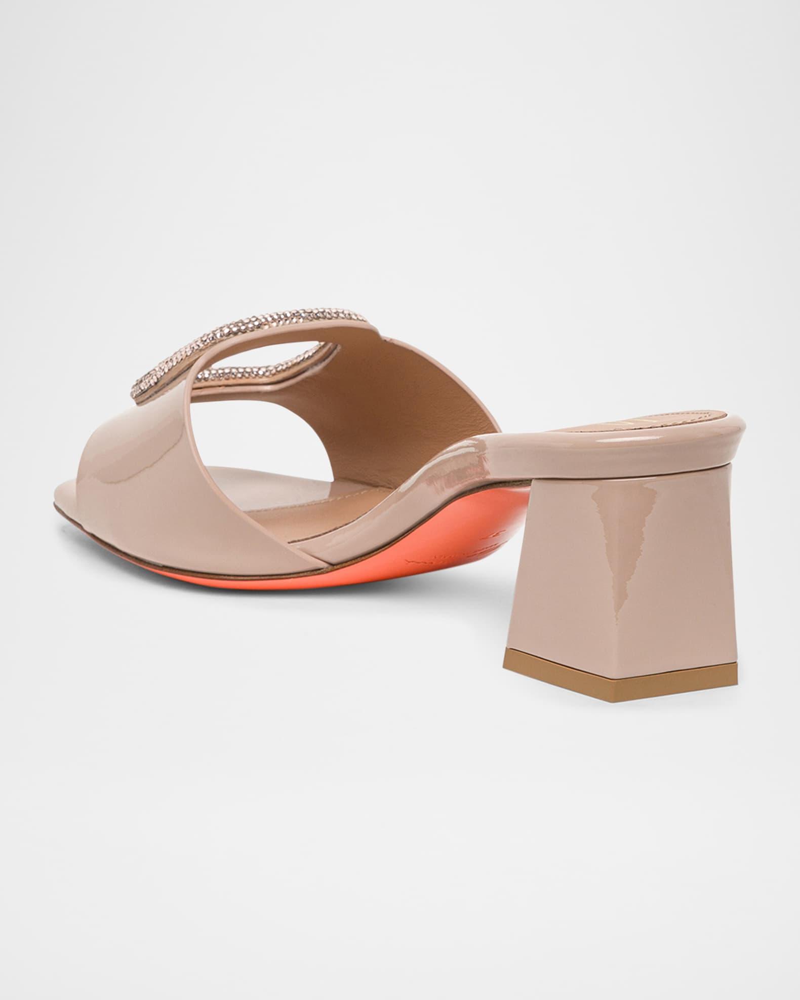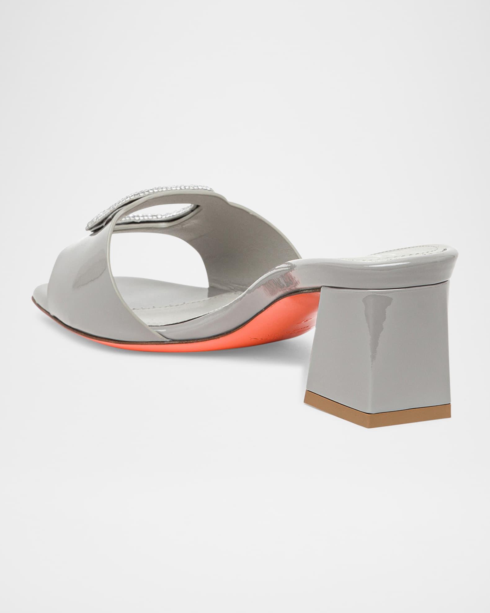 Marta Patent Crystal-Buckle Mule Sandals