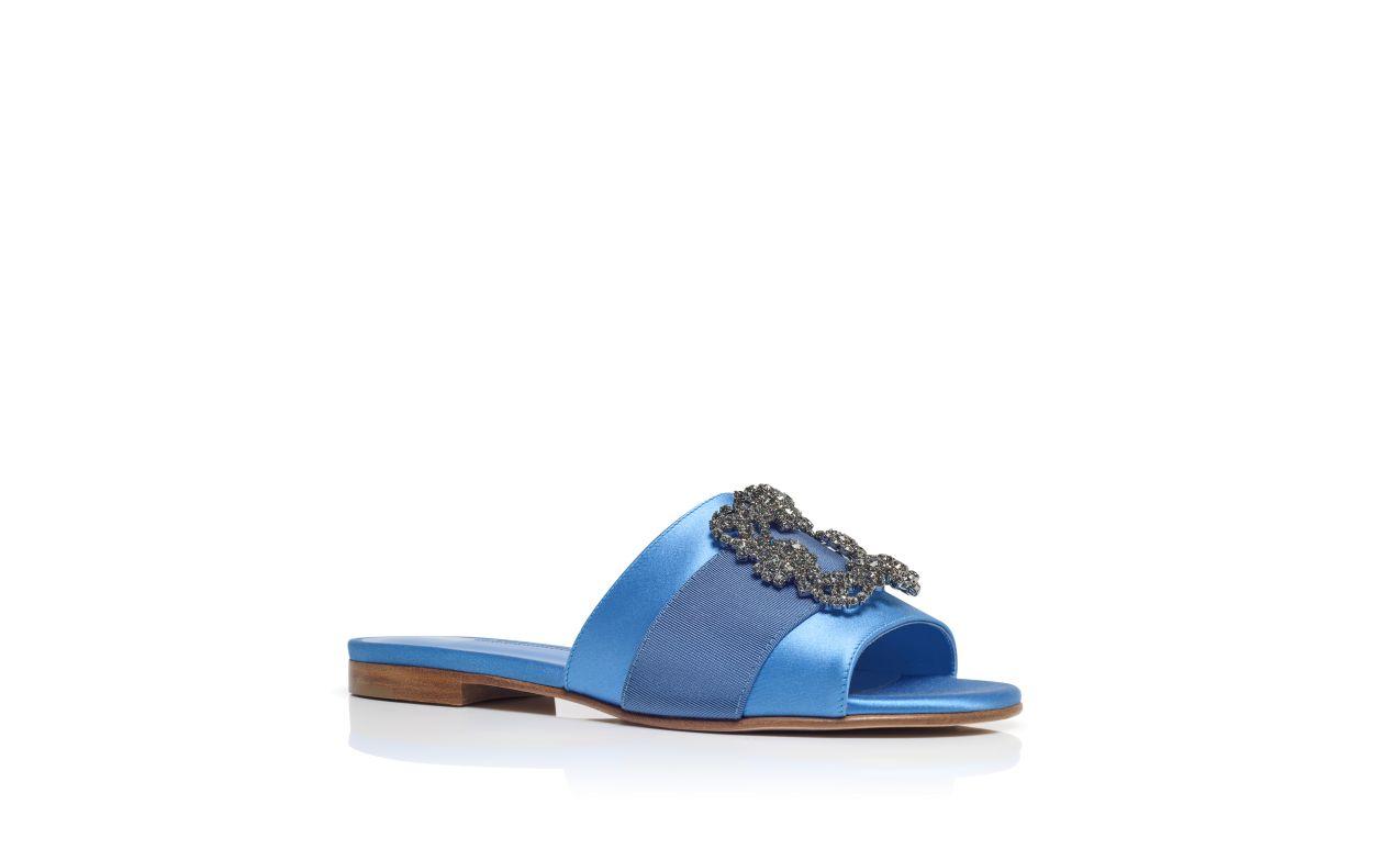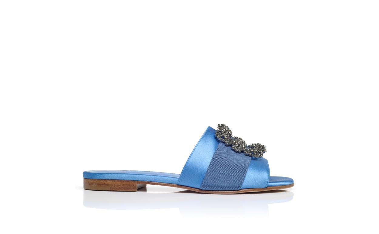 MARTAMOD Blue Satin Jewel Buckled Flat Sandals