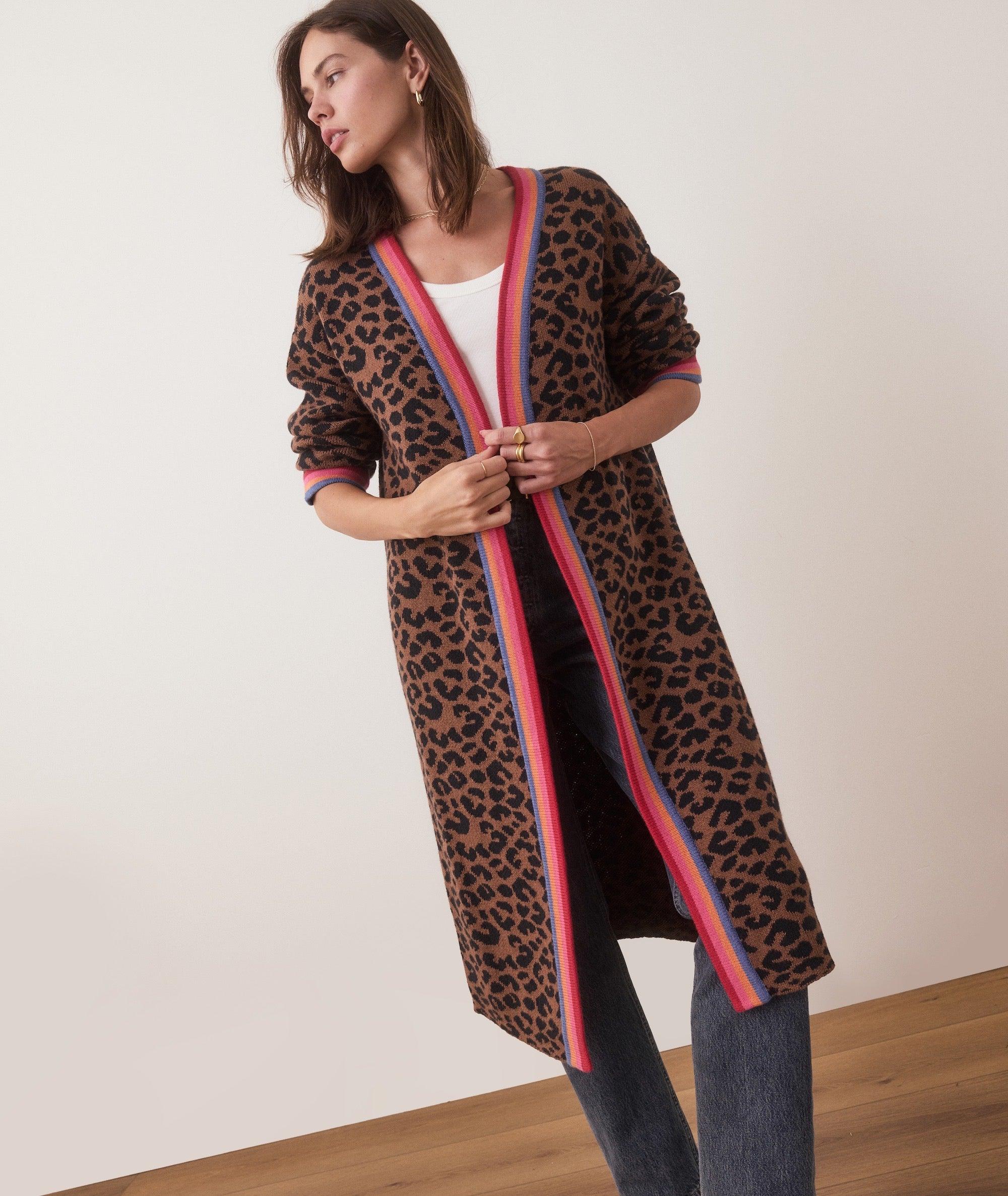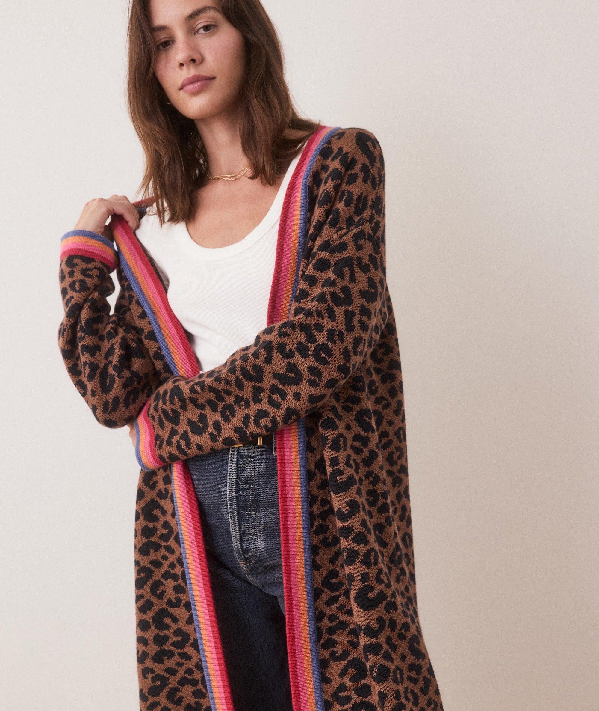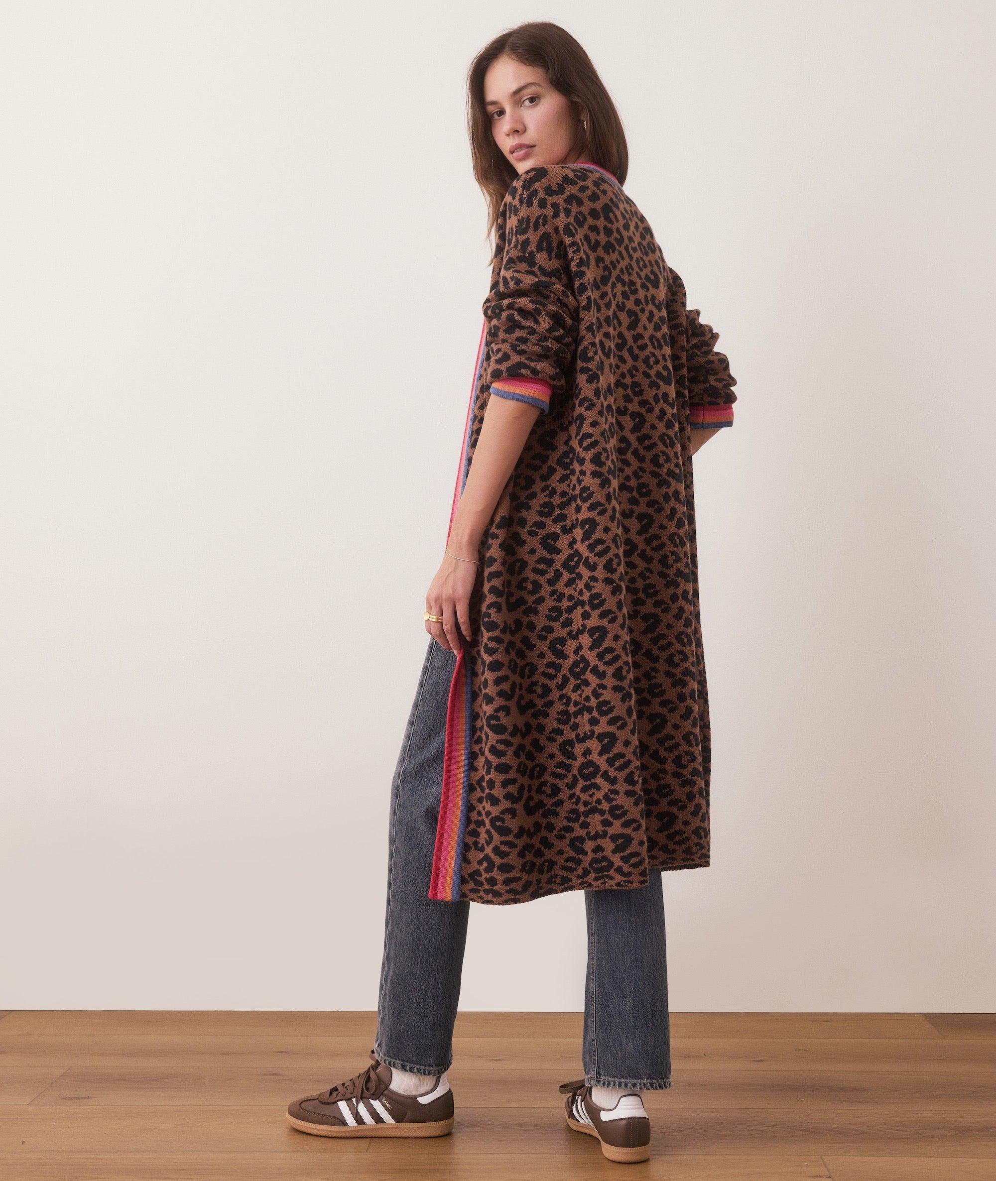 New style alert (!) We wanted to make a comfortable statement piece that falls right into the season's trend. Designed with an open front that hits at the calf, it's like being bundled in your favorite blanket, but way more stylish. Multicolor tipping and leopard jacquard add just the right touch of cool. Pair it with a black Lexi dress or throw it over jeans and a tank for that laid-back, layered look.