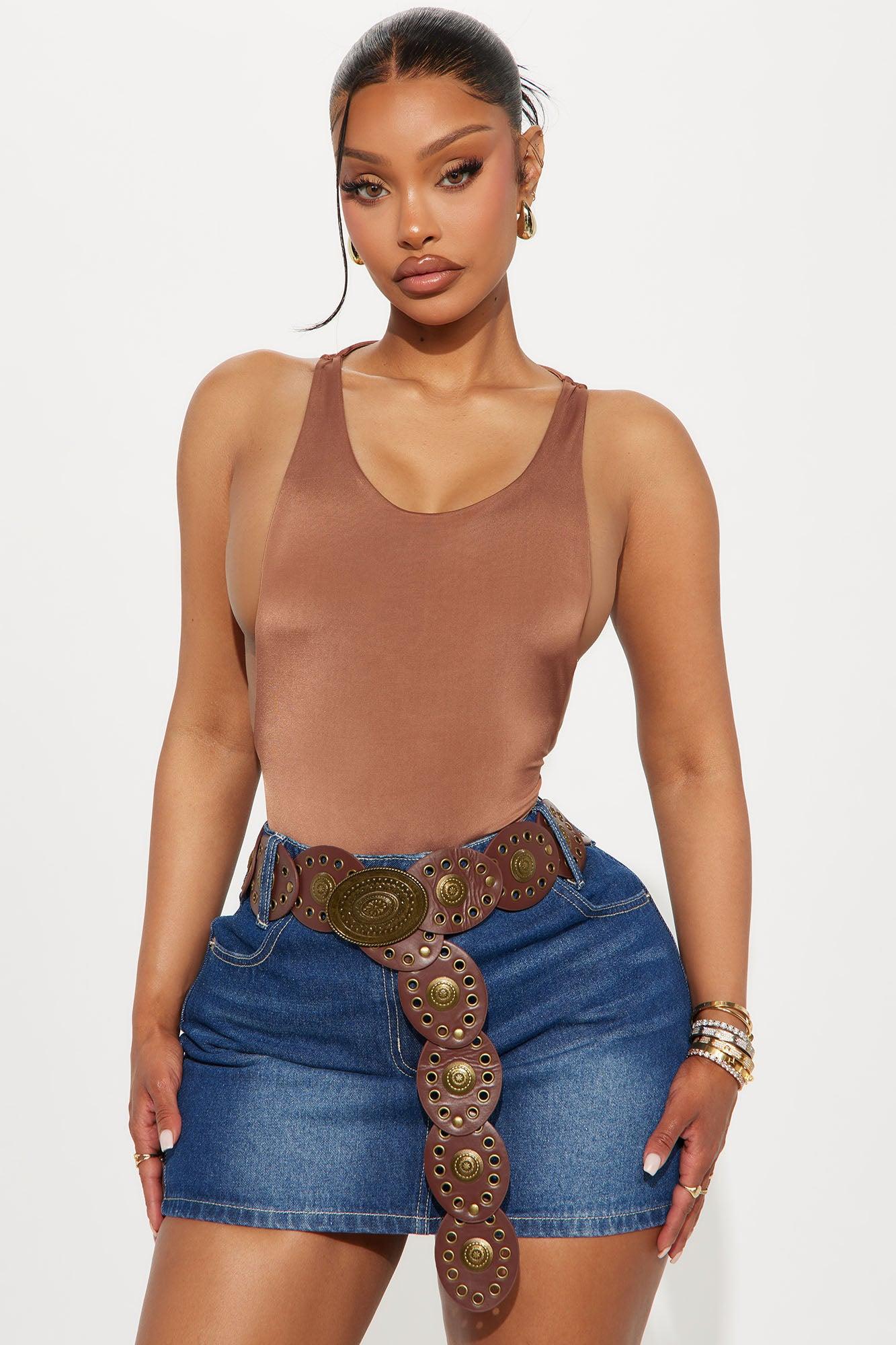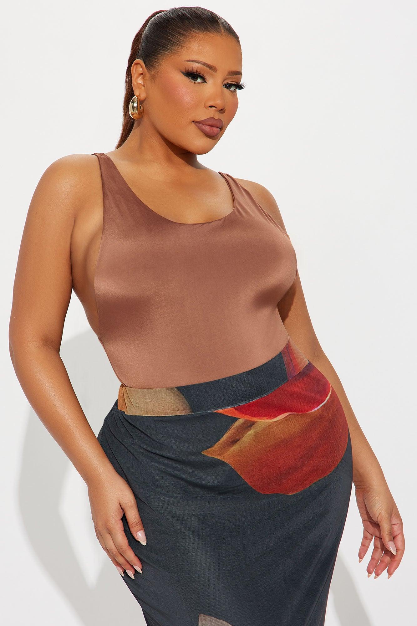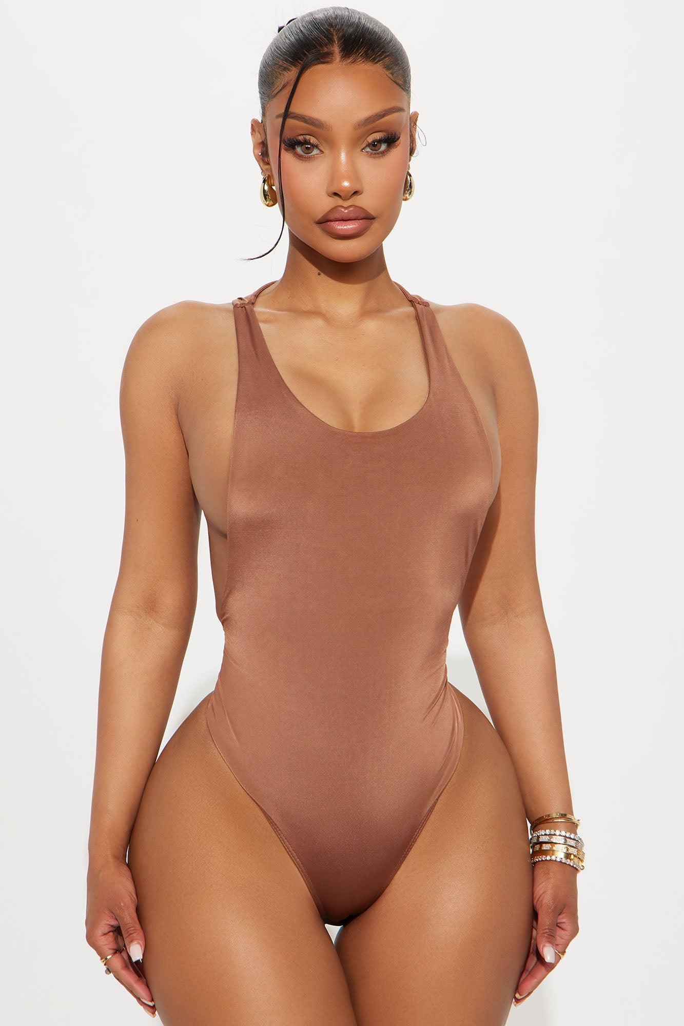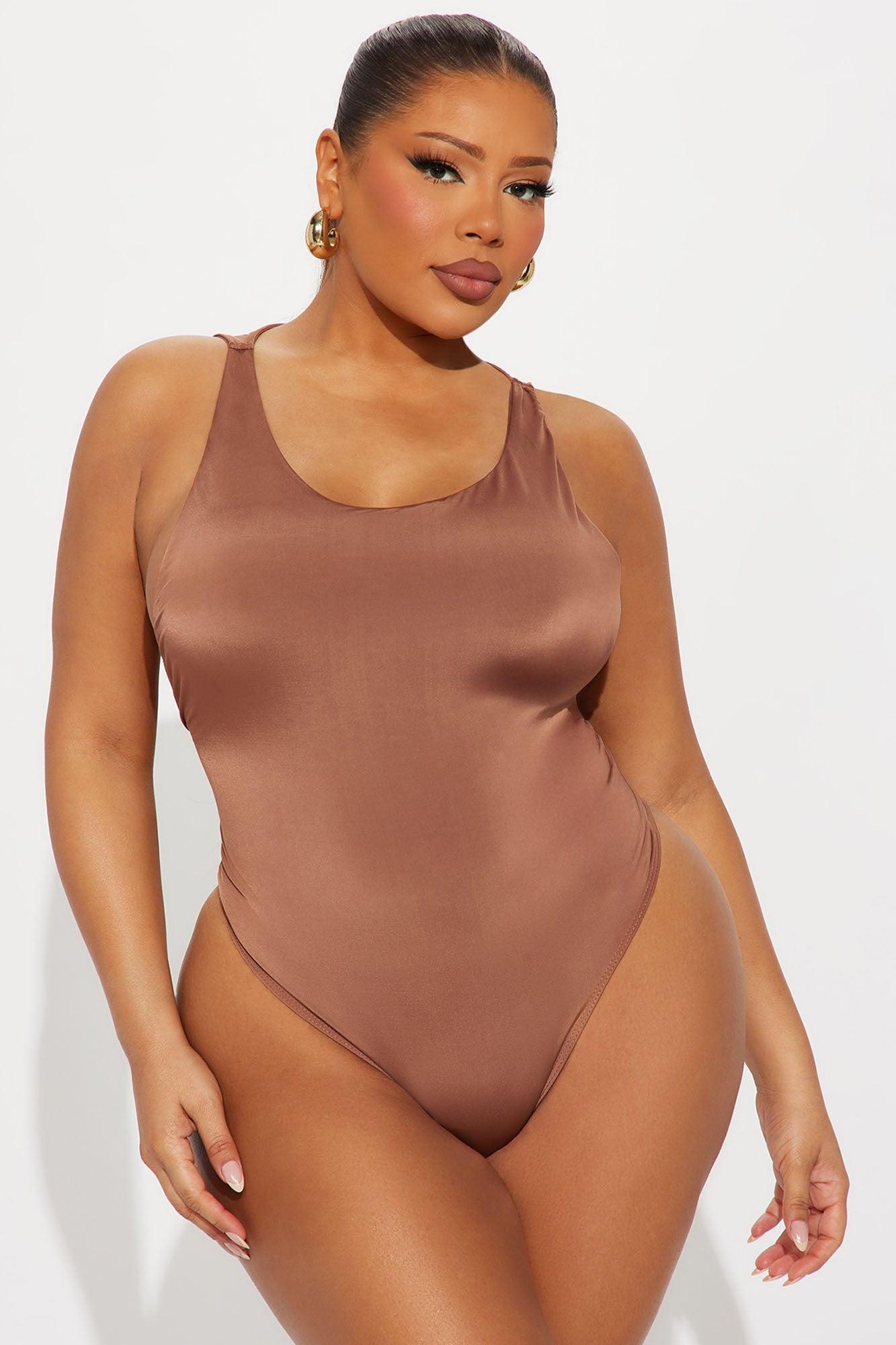 Available In Chocolate And Olive. Bodysuit Stretch Scoop Neck Exposed Sides Double Lined Thong Bottom Snap Closure Self: 95% Polyester 5% Spandex Imported California Proposition 65WARNING: Cancer and Reproductive Harm - www.P65Warnings.ca.gov.