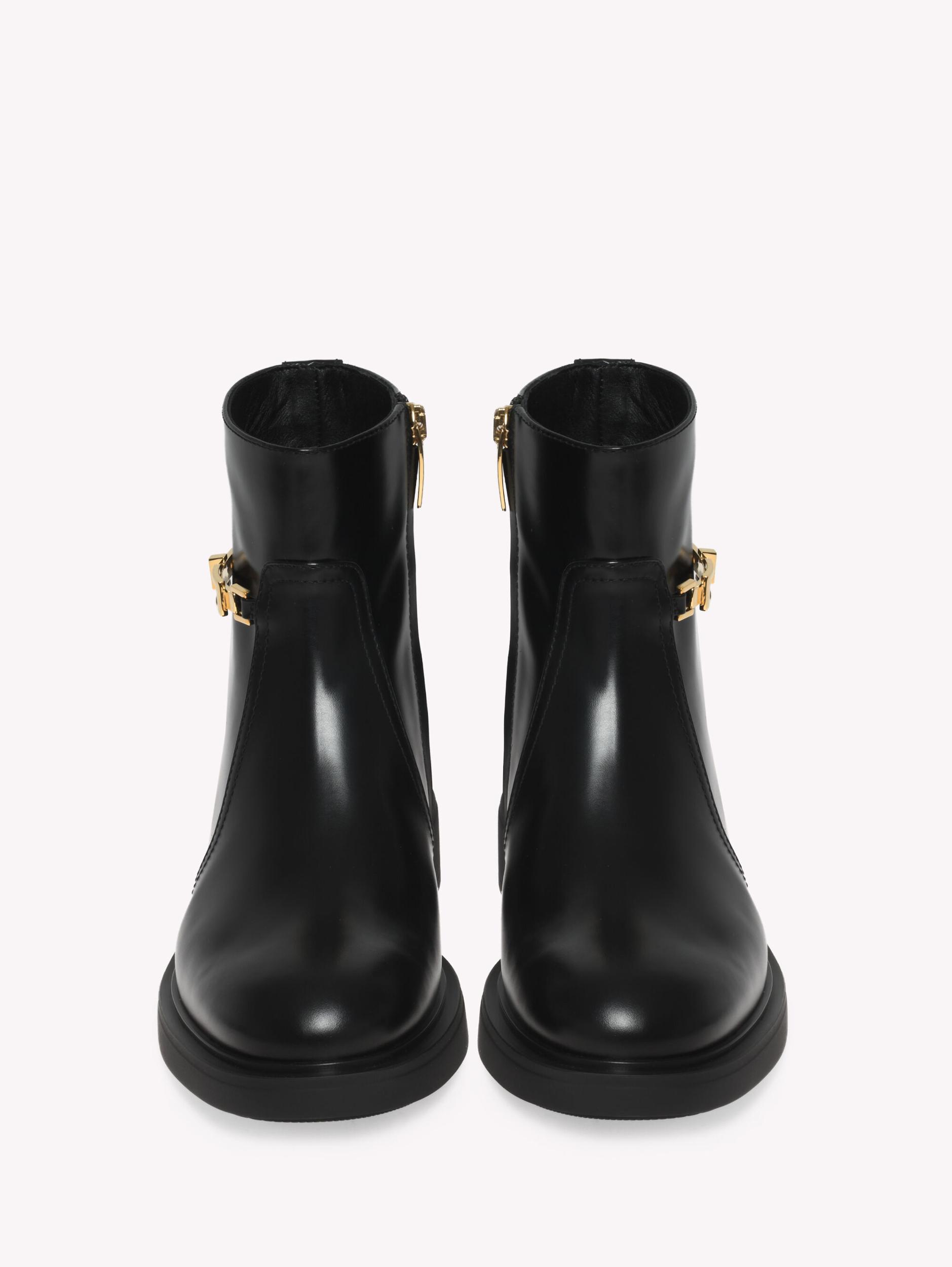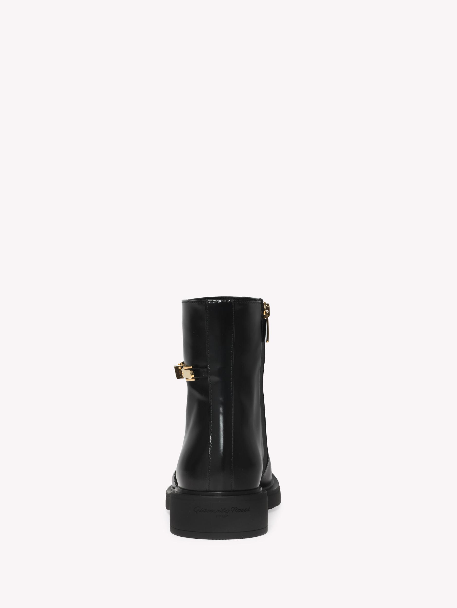Crafted from leather, Martine Bootie is a round toe fitted style with an inside zip and a custom-made metallic detail. The urban sole measures 33mm at the back of the heel. Handmade in Italy.