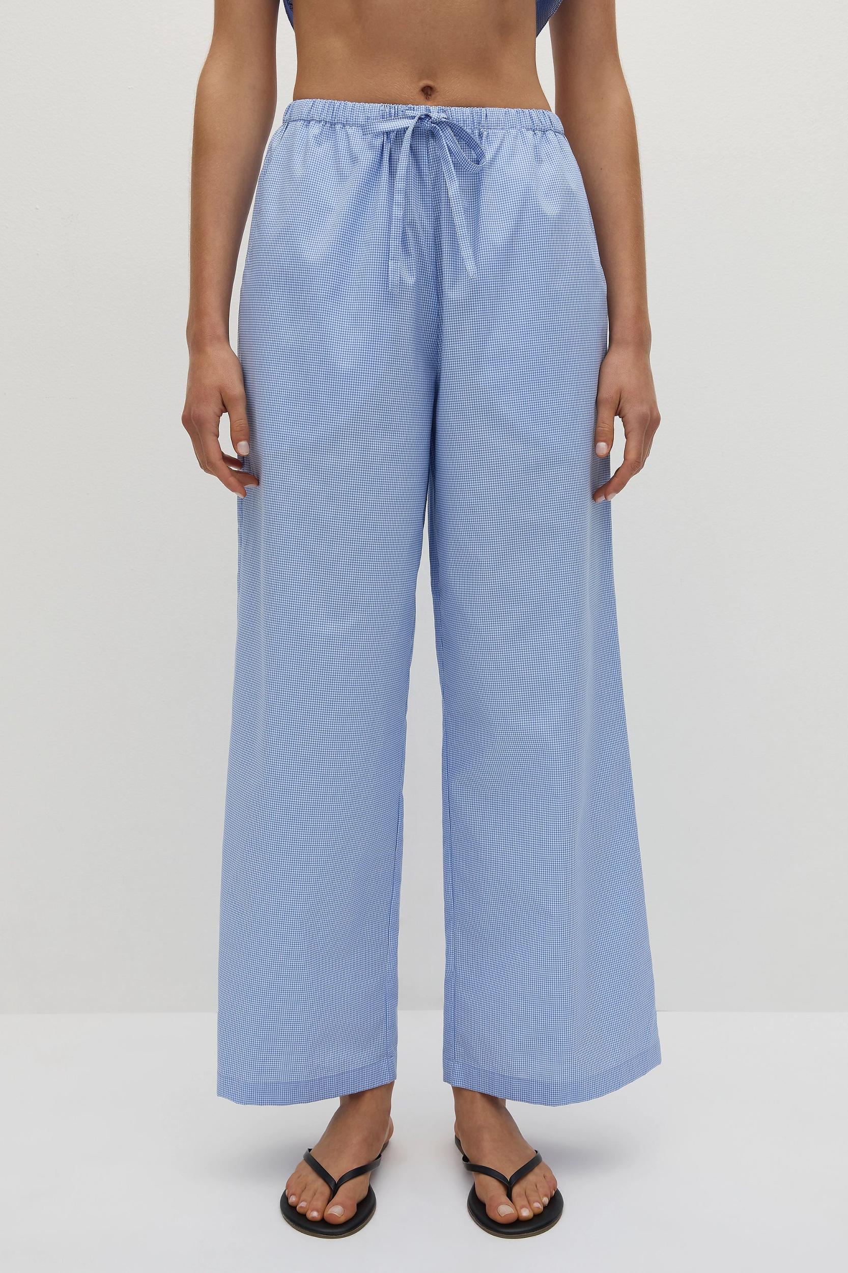 A signature FAITHFULL silhouette, reimagined with new elevated details and designed from a 100% organic cotton in a nostalgic baby blue gingham print. It is a relaxed low-rise pant that sits down on the hips with an elasticated drawstring waist and side seam pockets. With a straight leg, style with a simple tee or the Eudora Top for easy daytime dressing. This style is true to size. The elasticated waist offers additional stretch.