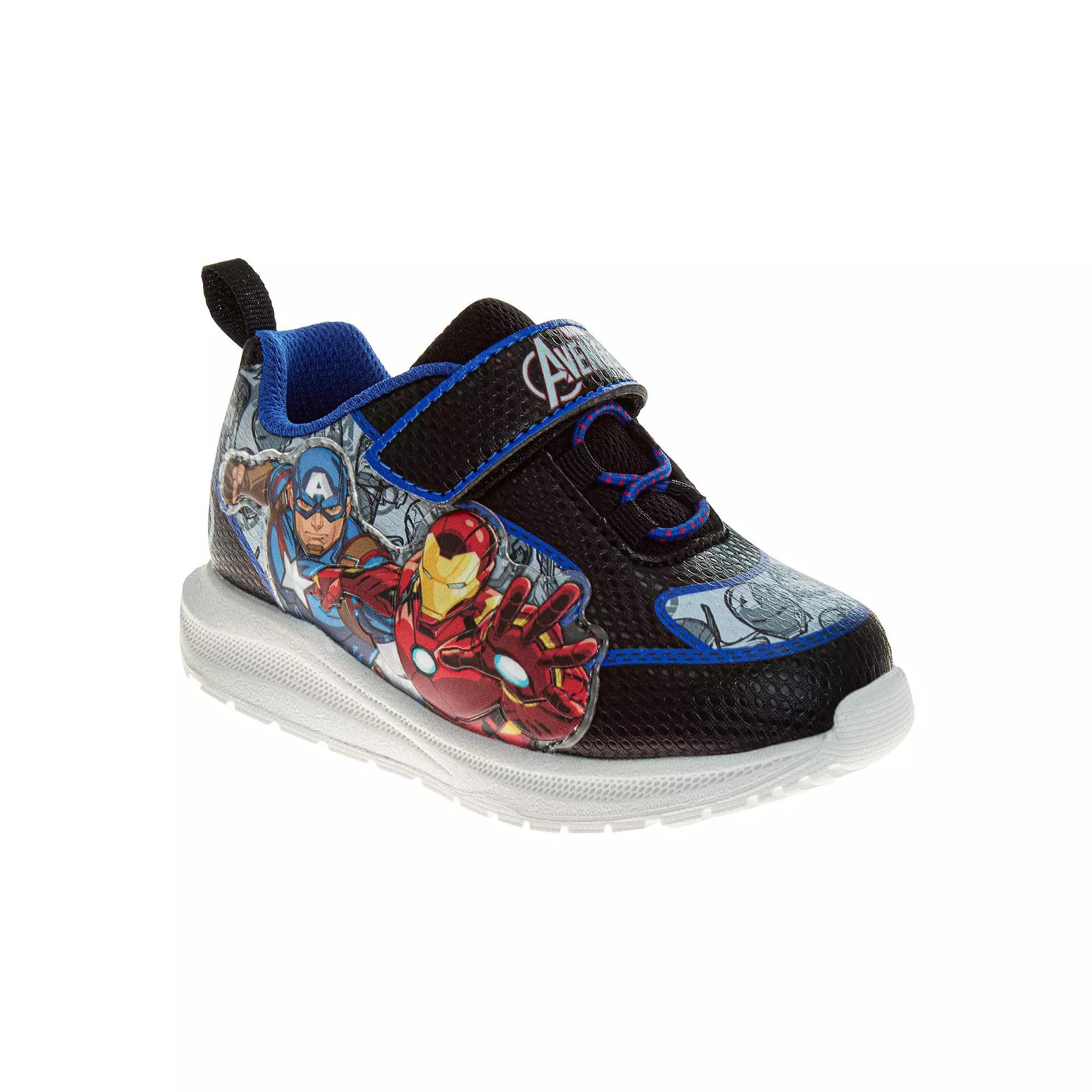 Featuring their favorite character, your kiddo will love wearing these Marvel Avengers Iron Man & Captain America Toddler Boy Light Up Sneakers.Click this FOOTWEAR GUIDE to find the perfect fit and more! DETAILS Manmade upper Manmade lining Manmade midsole Rubber outsole Round toe Hook-and-loop tape closure Slip-resistant outsole 1-in. platform Spot clean Imported WARNING: Cancer and reproductive Harm. For more information go to www.P65Warnings.ca.gov. Size: 7. Color: Black. Gender: male.