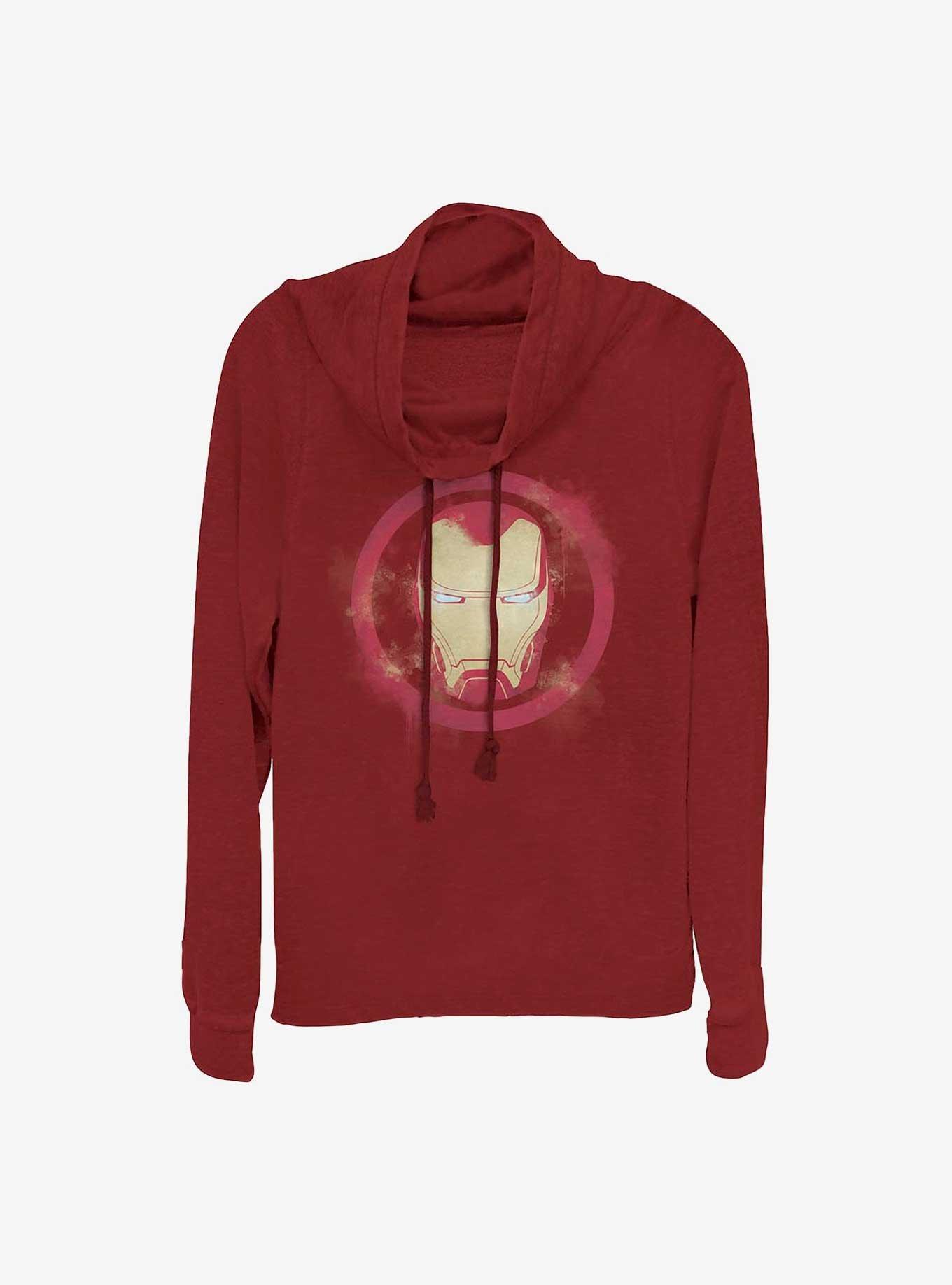 Marvel Iron Man Spray Logo Girls Cowl Neck Long Sleeve Top