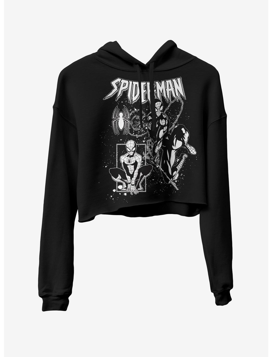 Yep, your Spidey-Sense is definitely tingling. This cropped hoodie captures your fave Marvel superhero, Spider-Man, at rest and in action in a splatter-accented graphic. Raw bottom and drawstring hood.50% cotton; 50% polyesterWash cold; dry lowImportedListed in junior sizes