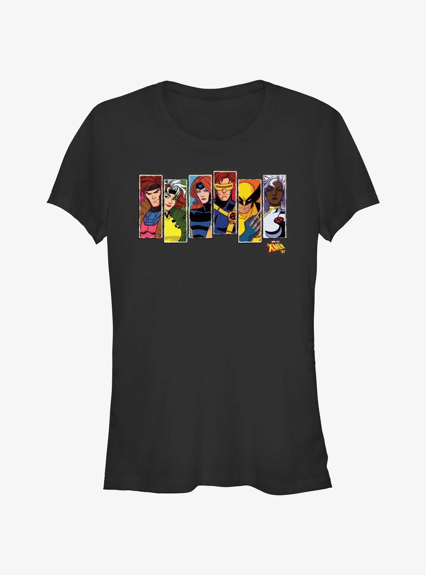 Mutants, FTW! This fitted tee features vertical portraits of Gambit, Rogue, Jean Grey, Cyclops, Wolverine and Storm from X-Men '97.Lightweight 100% combed ring spun cottonWash cold; dry lowImportedListed in junior sizesRuns small, size up