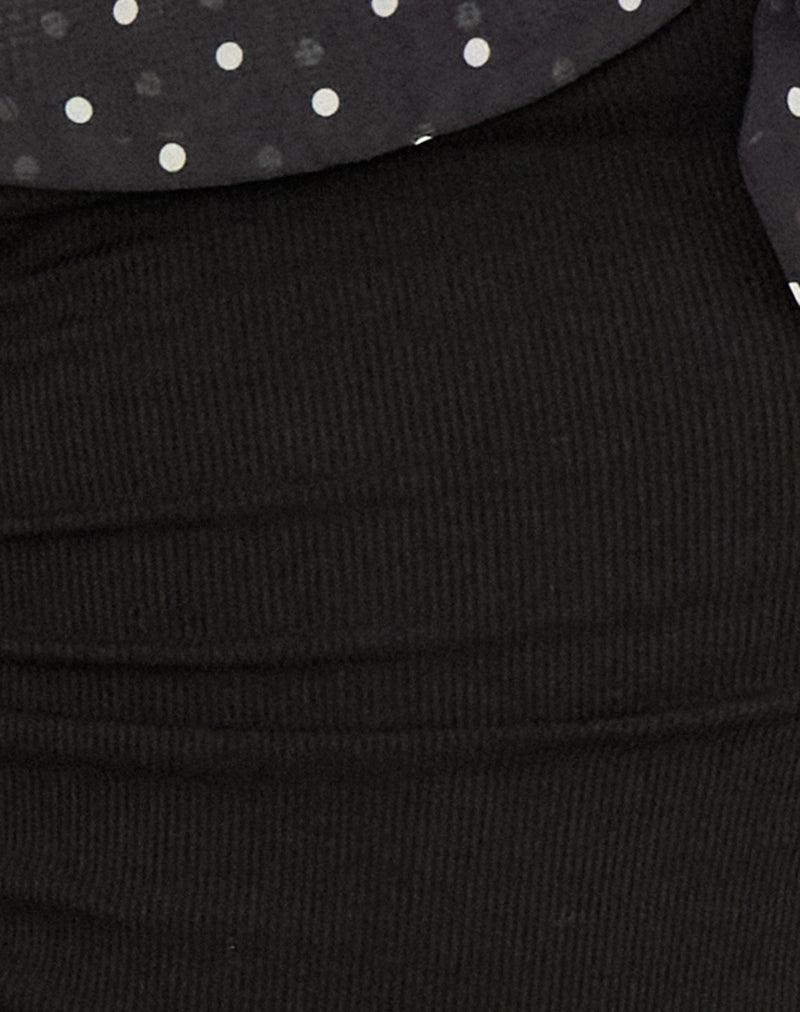 The Marvie top features a regular, bodycon fit with scoop neckline, cap sleeves and functional tie detail. Complete in a black chiffon fabric with printed polka dot pattern on the neckline. Pair with the Eunia short. MODEL WEARS SIZE:EXTRA SMALL - MODEL HEIGHT:5'6.5