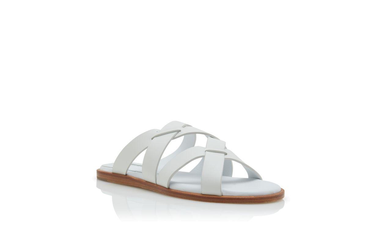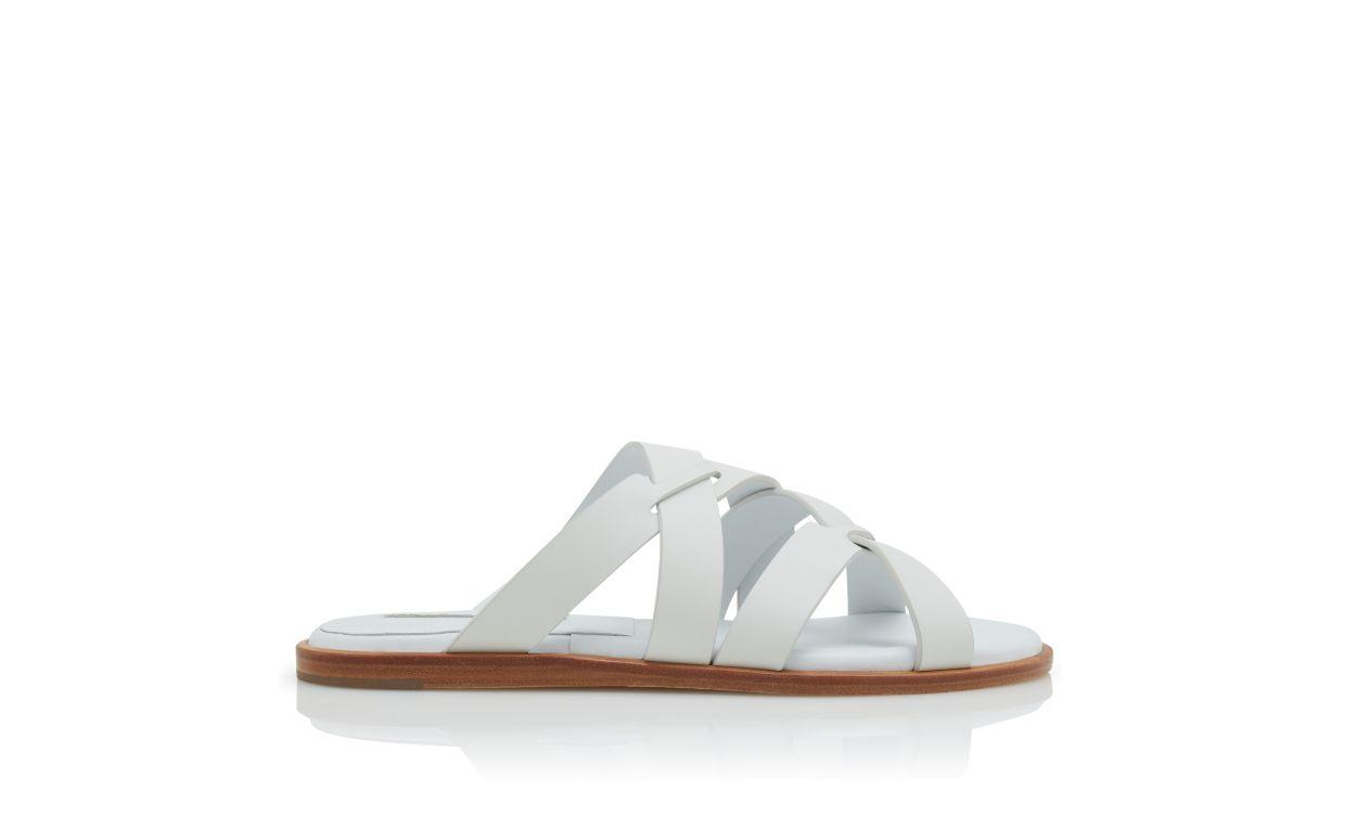 MARVINA White Calf Leather Crossover Flat Sandals