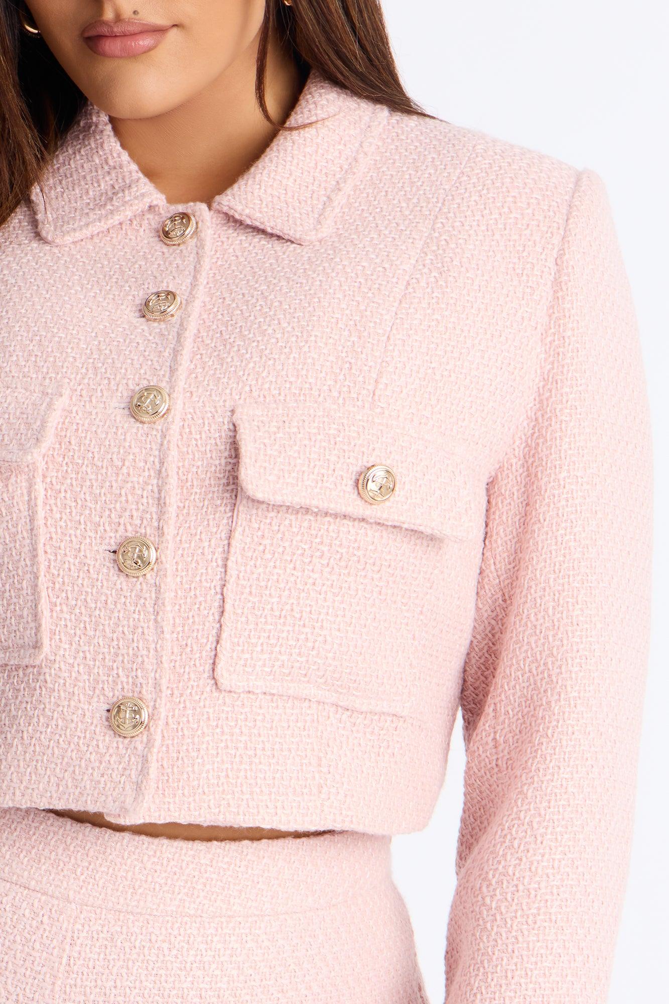Mary Jane Cropped Tweed Coat - Pink Female