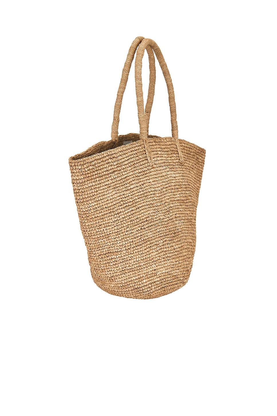 Woven straw exterior with textile lining. Top magnetic button closure. One main compartment. Interior slip pocket. Measures approx 21" W x 14" H x 8" DShoulder strap with a 9" drop. This item is not available to ship to Australia. Made in China. Revolve Style No. HATR-WY56. Manufacturer Style No. SHAM405RE.