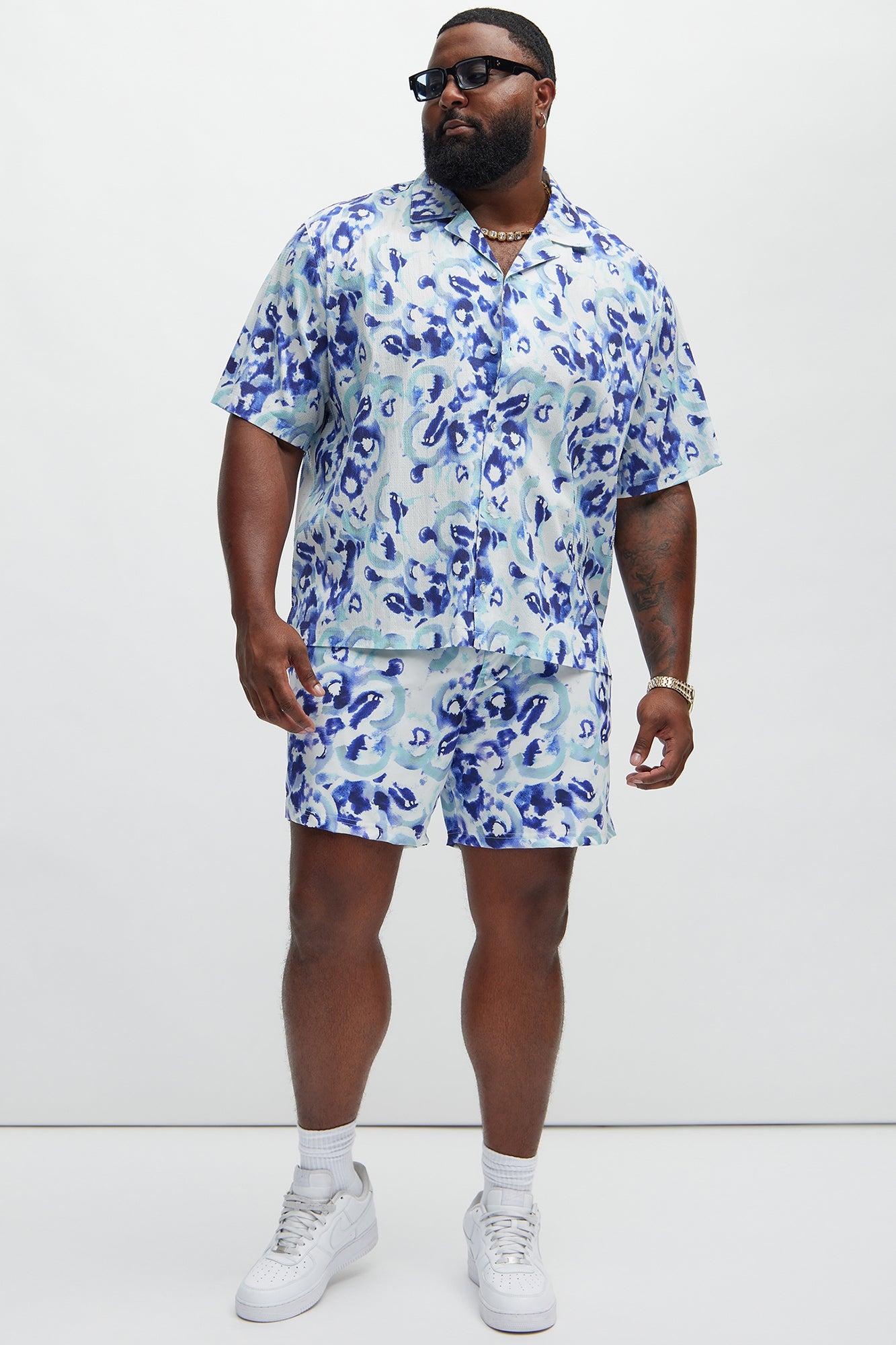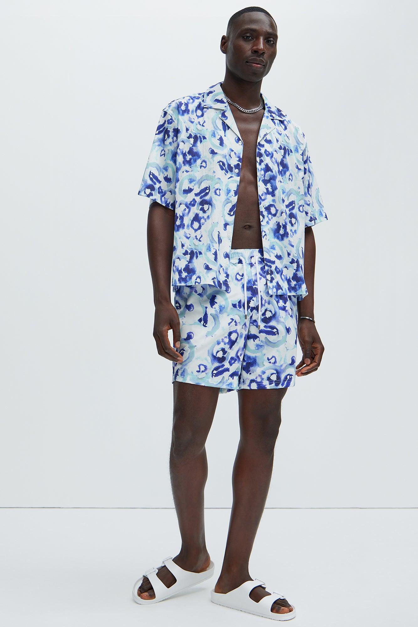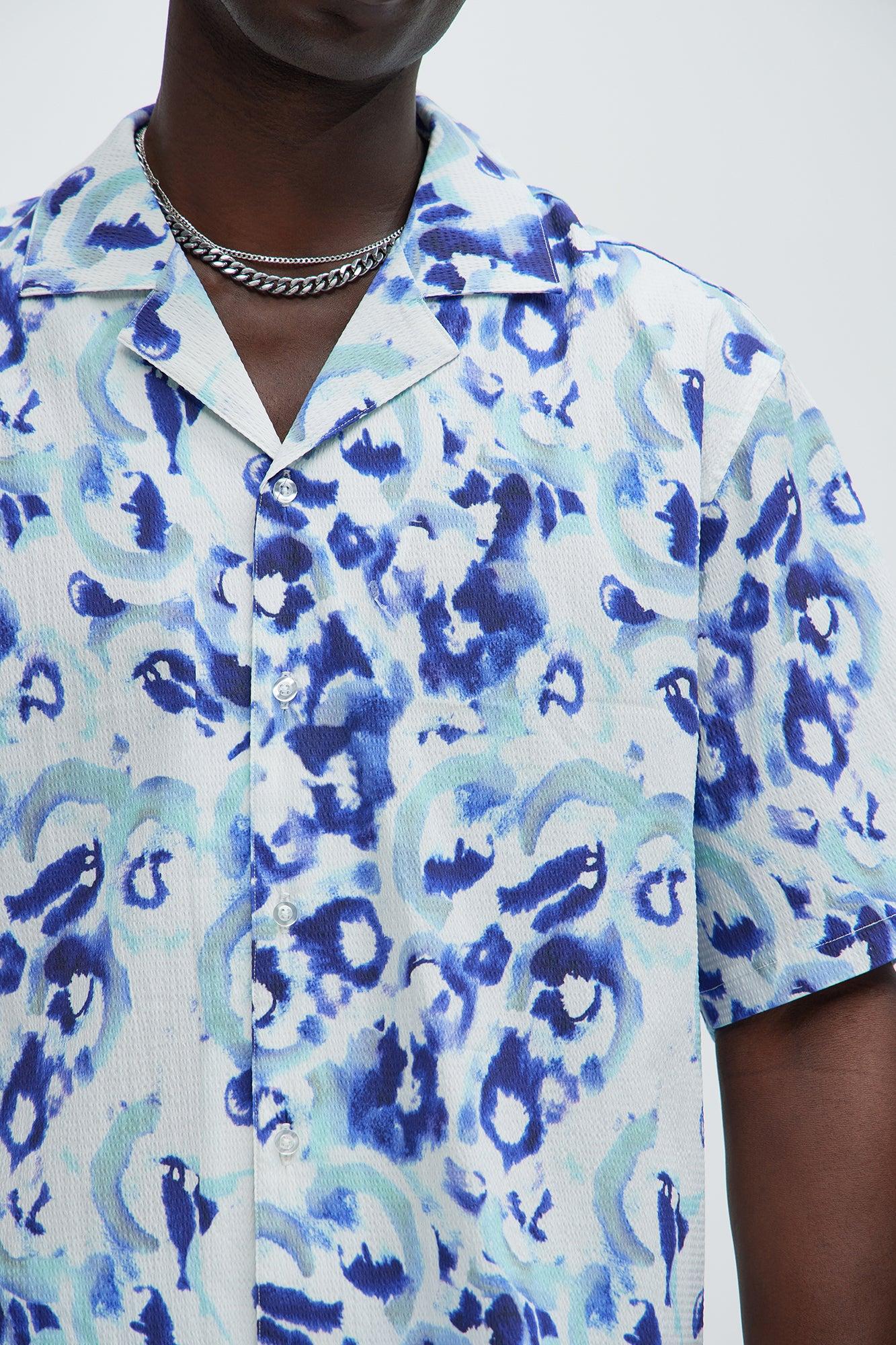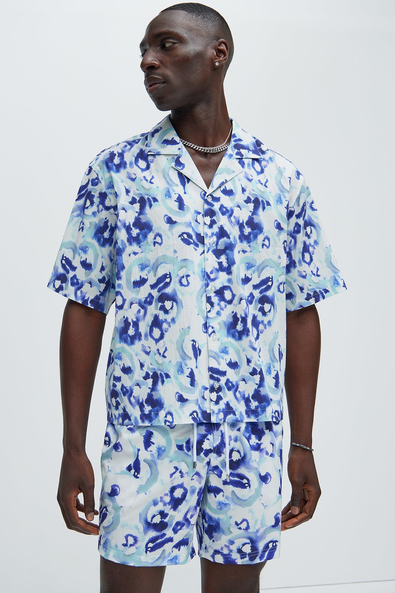 Available In Blue/combo. Fold Down Collar Front Button Closure Short Sleeve Bottom Side Slit Pair With "Maslow Swim Trunks" Shell: 100% Polyester Imported California Proposition 65 WARNING: Cancer and Reproductive Harm - www.P65Warnings.ca.gov.