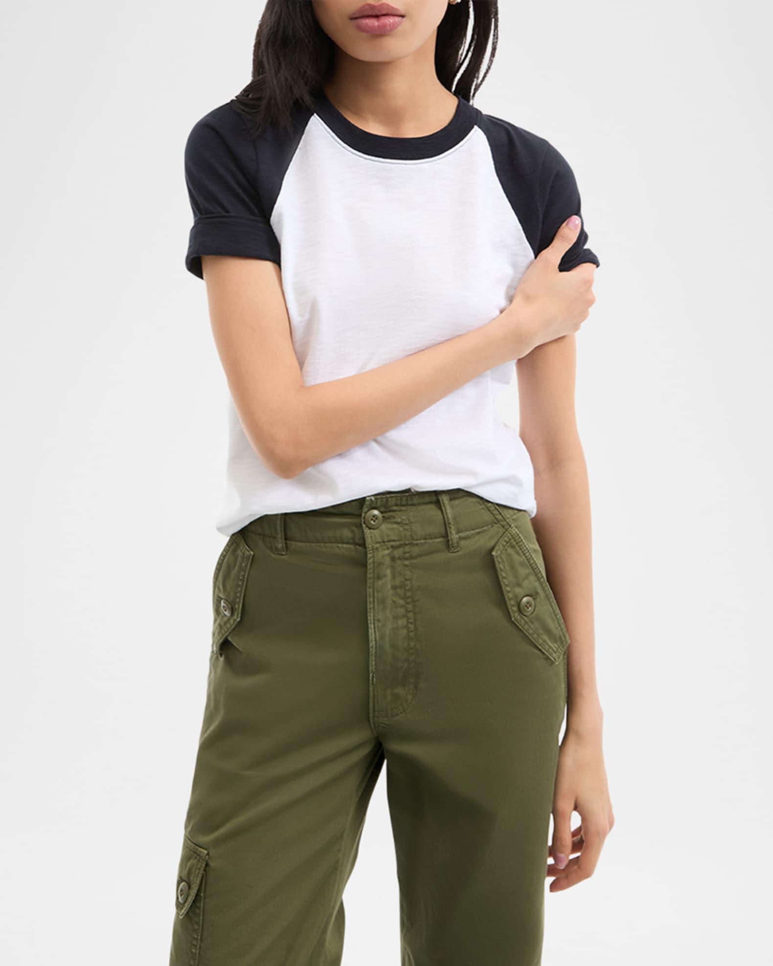 Veronica Beard "Mason" classic baseball tee Crew neckline Short sleeves; approx. 15.5"L Easy fit Hem sits at the hip Pullover style Cotton Unlined Machine wash cold Imported