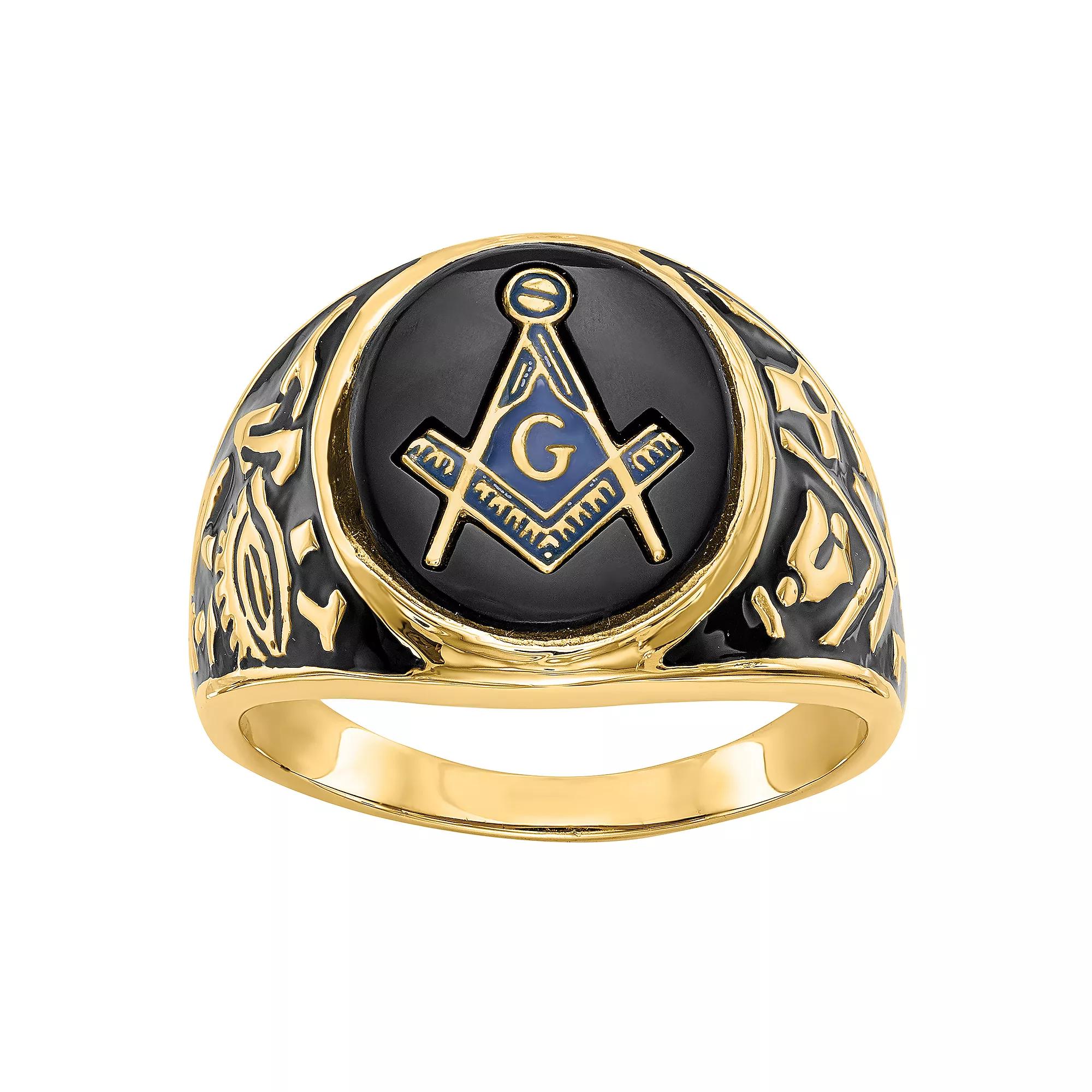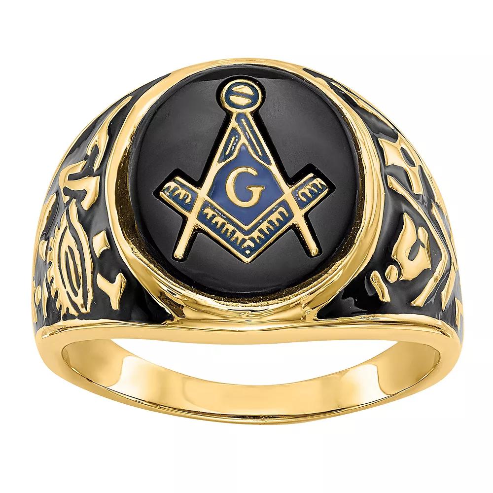Fashioned with onyx, this Masonic Collection men's 14k gold Masonic ring offers sleek and classy style. Fashioned with onyx, this Masonic Collection men's 14k gold Masonic ring offers sleek and classy style. FEATURES Width: 16 mm Metal: 14k gold Finish: enameled, polished, textured Masonic Symbol Packaging: boxedSTONE DETAILS Stone type: onyx Center stone size: 14 mm x 12 mm Shape: cabochon Gemstones may have been treated to enhance their appearance. Special care may be required. Please visit our Gemstone Treatment & Special Care Guide for more information. Image(s) may be enlarged to show detail. Size: 11. Color: Yellow. Gender: male. Age Group: adult.