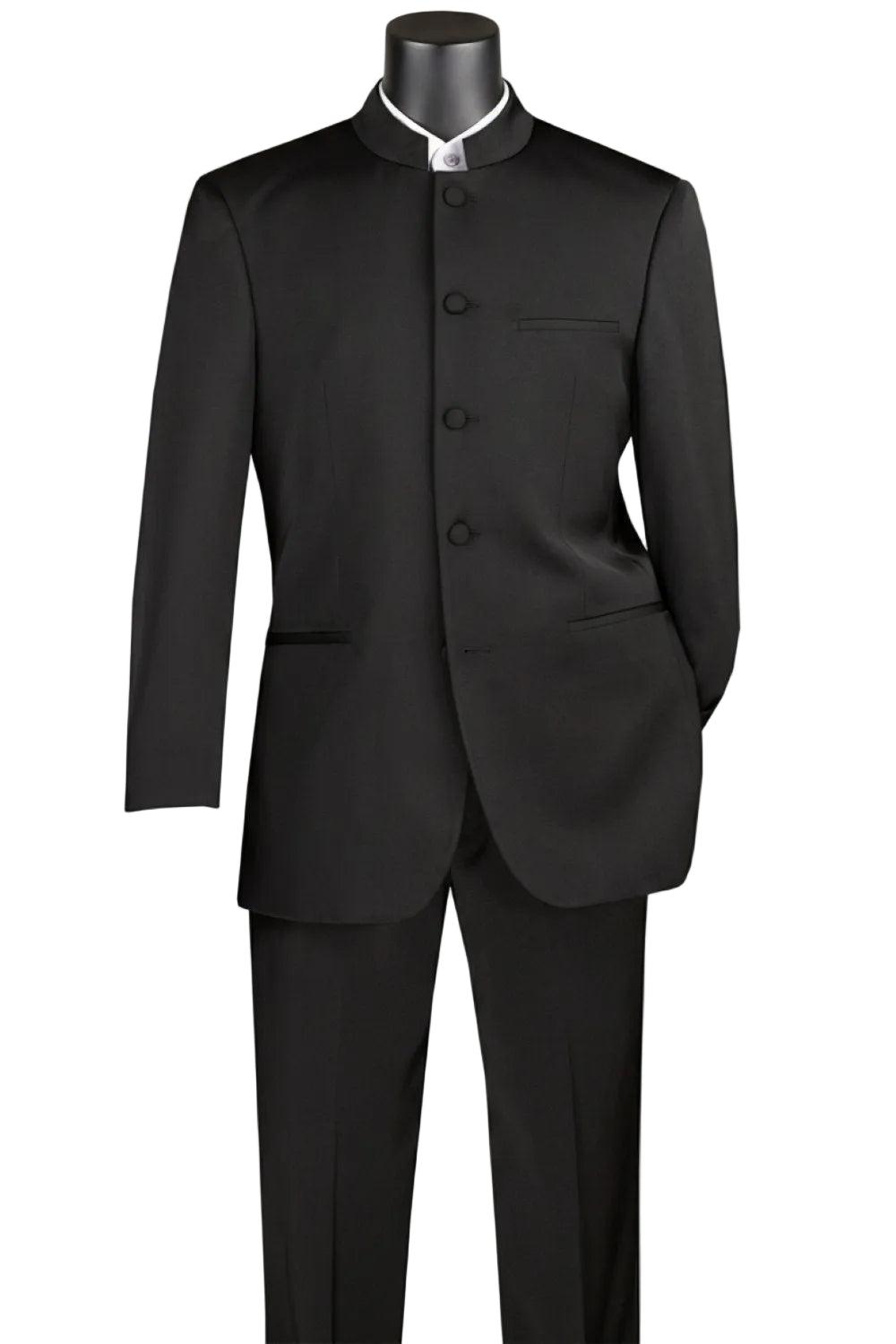 Master Collection - Regular Fit Men's 2 Piece Banded Collar Tuxedo Black