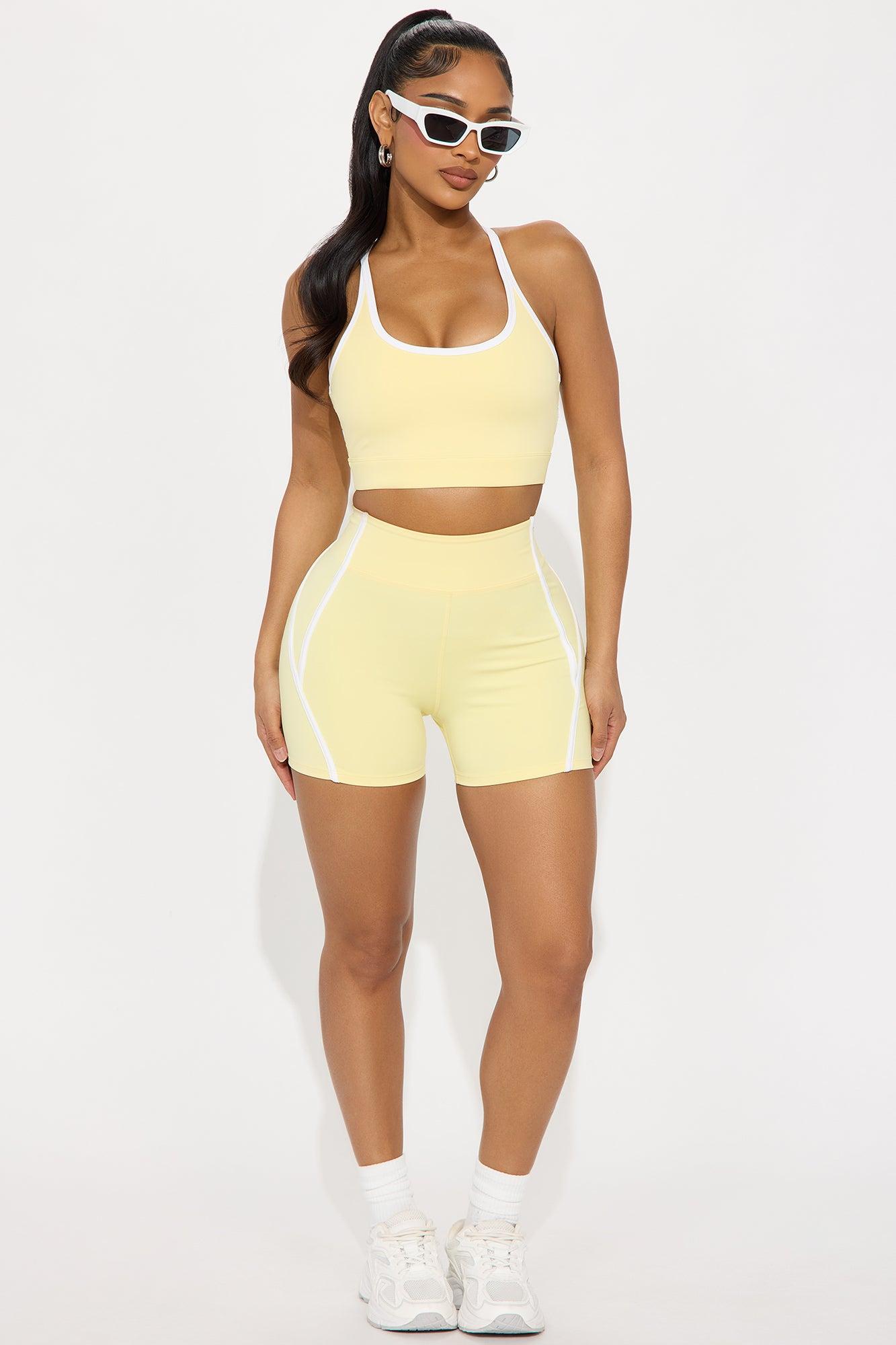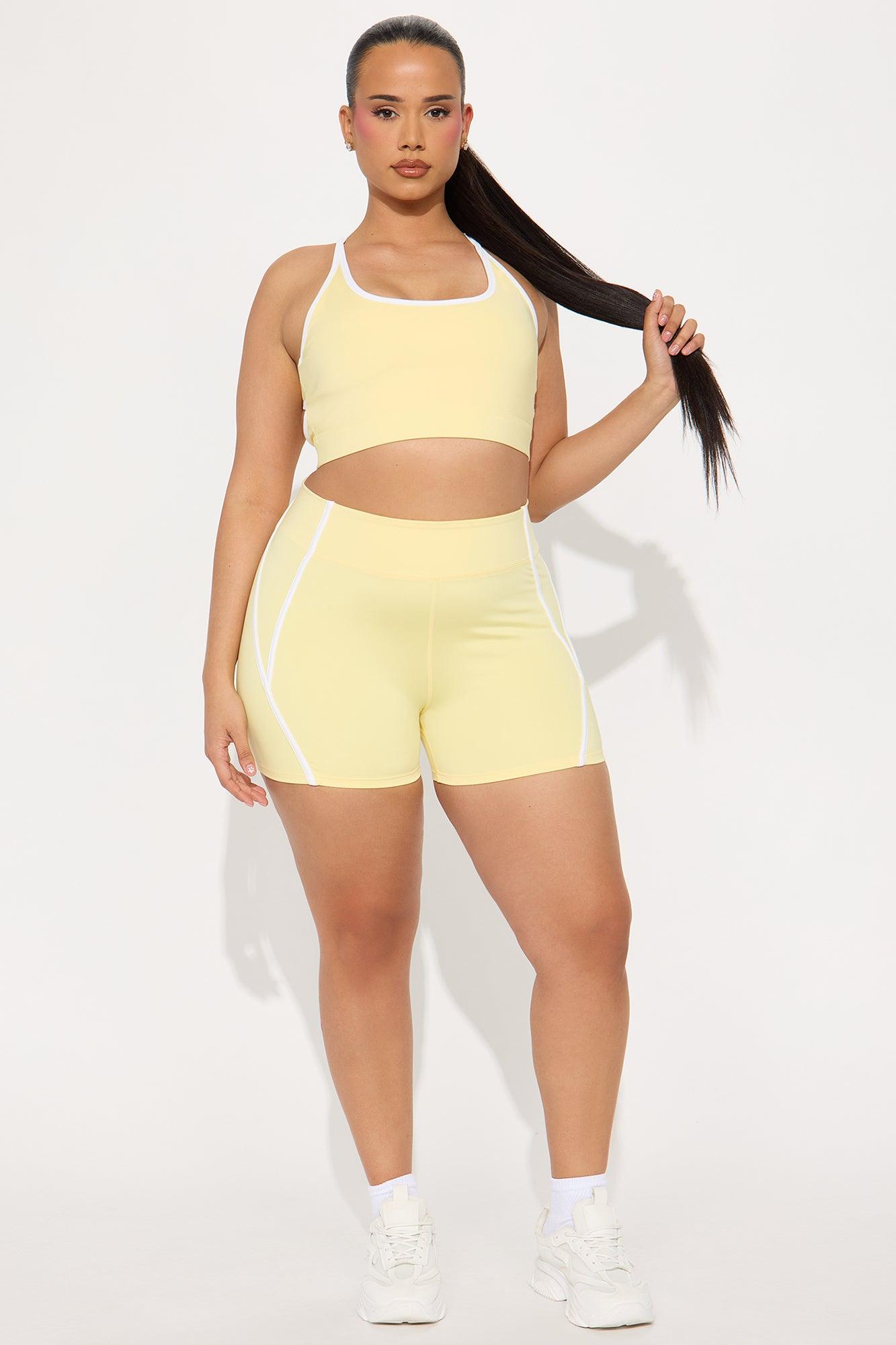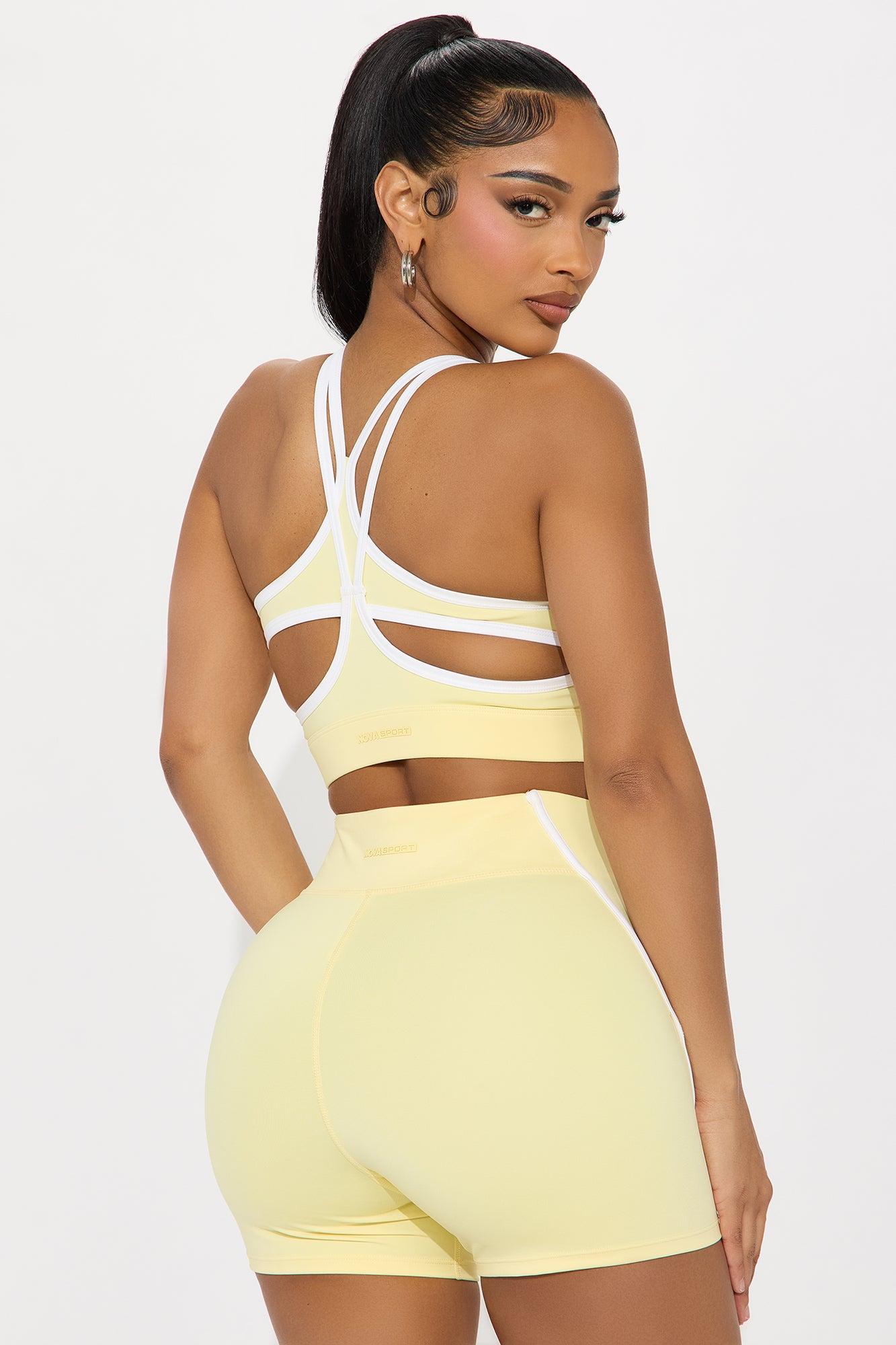 Available In Black And Butter Yellow. Sports Bra Scoop Neck Sleeveless Elevate Cut Out Detail Contrast Trim High Impact Stretch Pair With "Match Maker Elevate Biker Short" Shell: 73% Polyester 27% Spandex Mesh: 82% Nylon 18% Spandex Imported