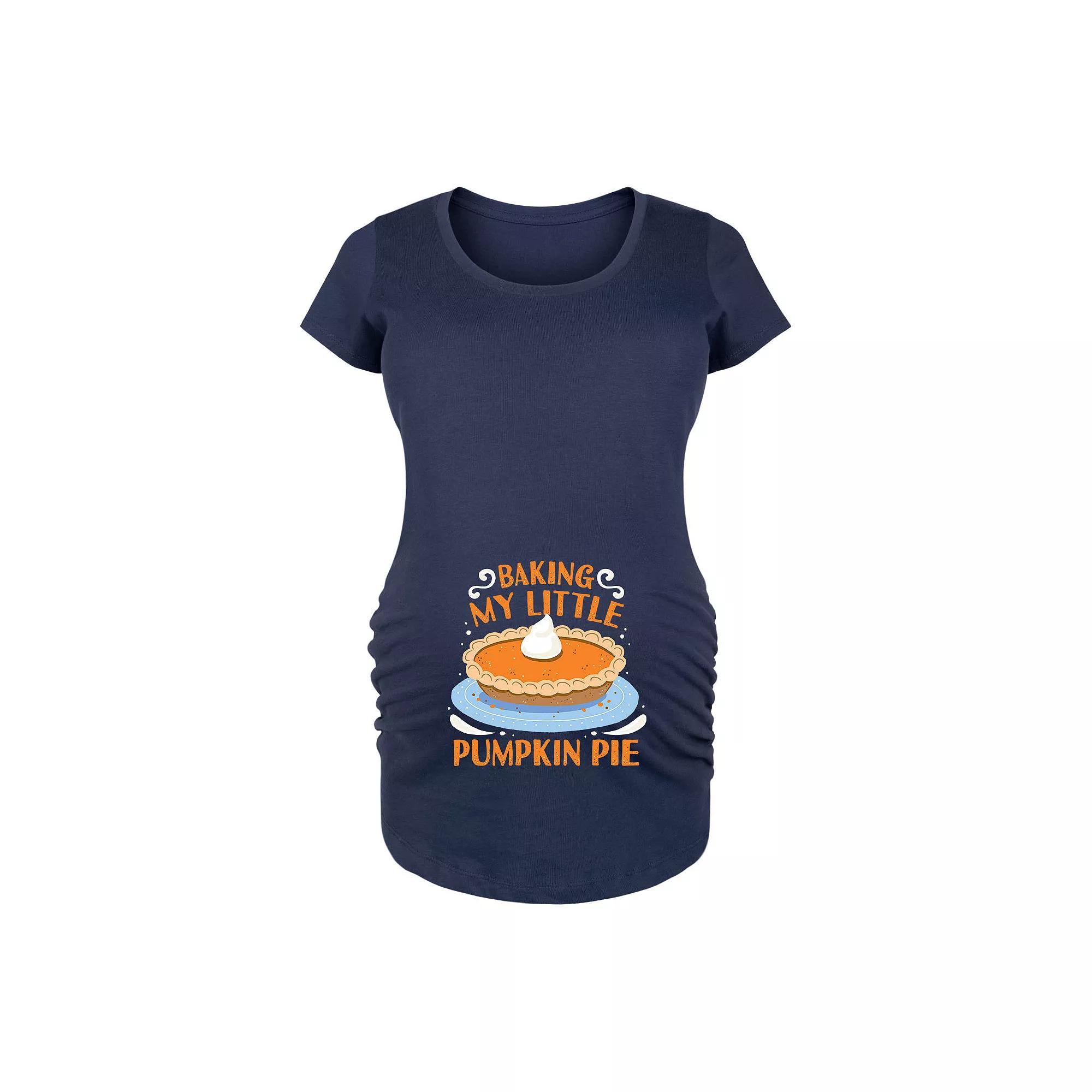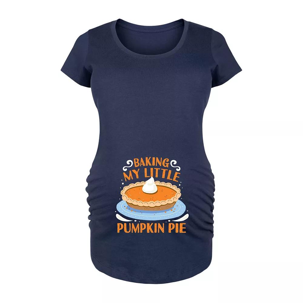 Navy Baking My Little Pumpkin Pie Maternity Scoop Neck Tee - Women. Soft cotton tee featuring a fun graphic and side ruched detail to give your bump room to grow. Full graphic text: Baking my little pumpkin pie.Side ruched detail100% cottonMachine wash; tumble dryImported, screen printed in the USA
