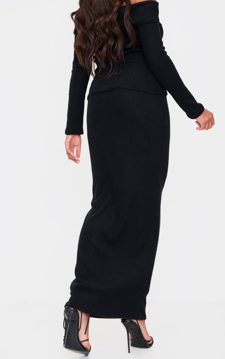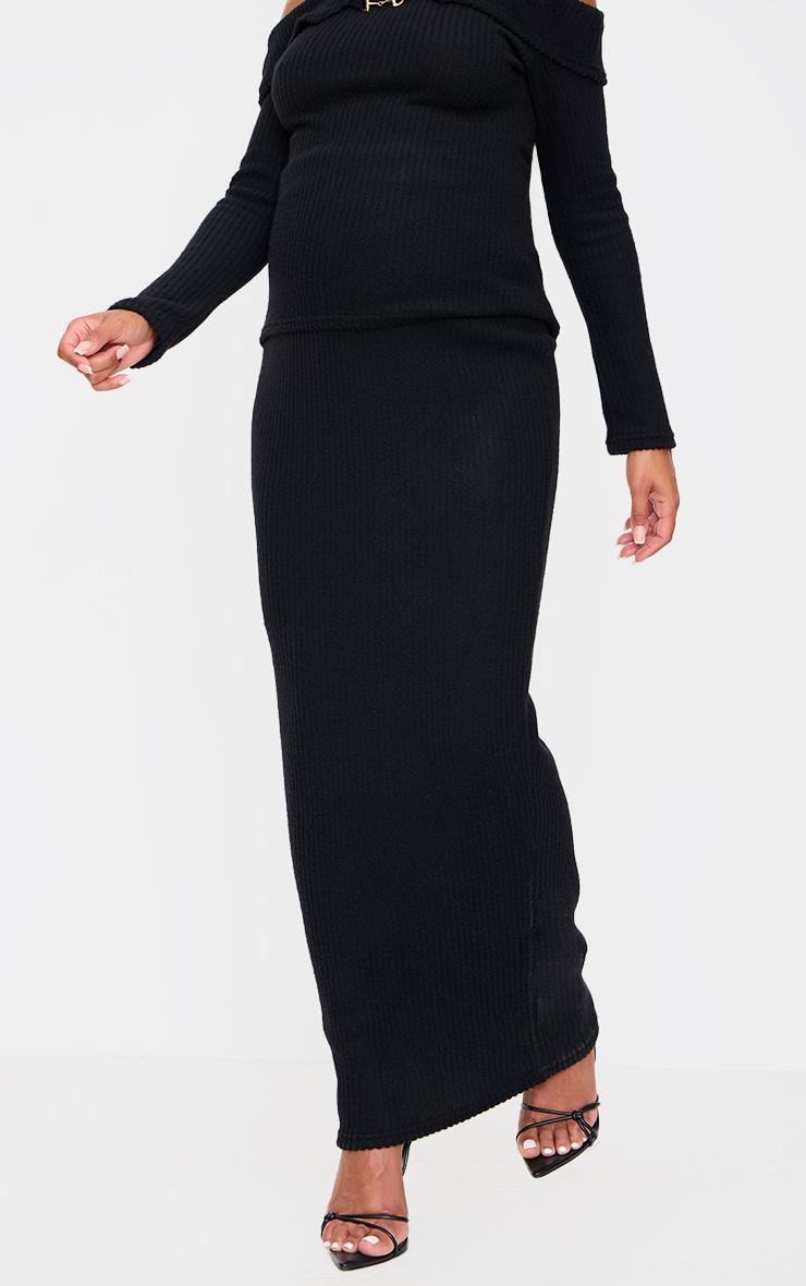 All Maternity garments are true to standard sizes and you should choose your usual size. Navigate your maternity style with this refined black maxi skirt. Crafted from a brushed rib fabrication, the design offers a considered stretch and comfortable fit, ideal for adapting to your changing silhouette. The clean lines of the maxi length lend themselves to versatile styling; pair it with a fine knit top in a complementary tone for a modern, understated ensemble. Consider layering with a tailored overcoat and delicate gold jewelry for elevated occasions, or embrace a more relaxed feel with a chunky knit and flat boots. Length approx 108cm/42.5inch (Based on a sample size S) Model wears size SModel Height - 5ft 7inchp]:!mb-4inch>Brand: PrettyLittleThingCategory: AthleisureProduct type: Straight Leg JoggersColor: BlackMaterial: Brushed RibDesign: PlainOccasion: Evening