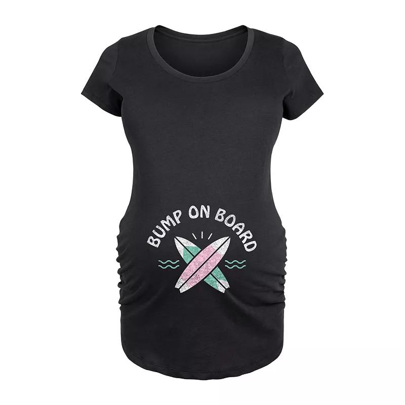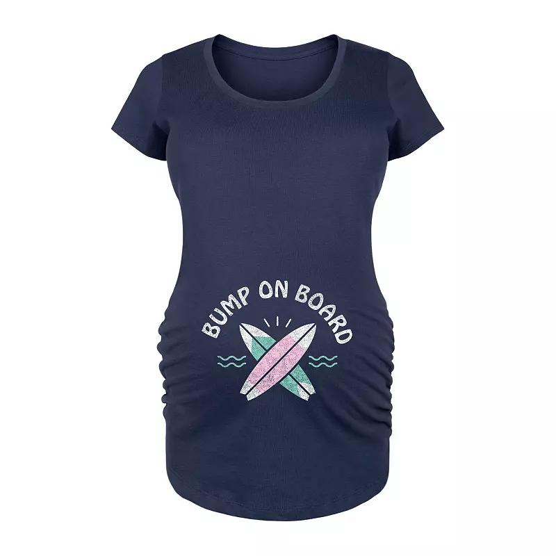 She will love showing off her style with this Maternity Bump On Board Surf Graphic Tee. FEATURES Ruched Sides Short sleeves CrewneckFABRIC & CARE Solid Color: Cotton ; Heather Colors: Cotton/Polyester Machine wash Imported Size: S-Mat. Color: Navy. Gender: female. Age Group: adult.