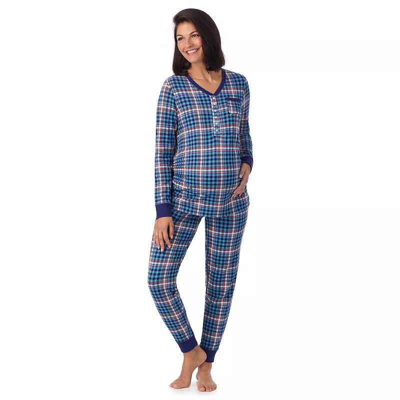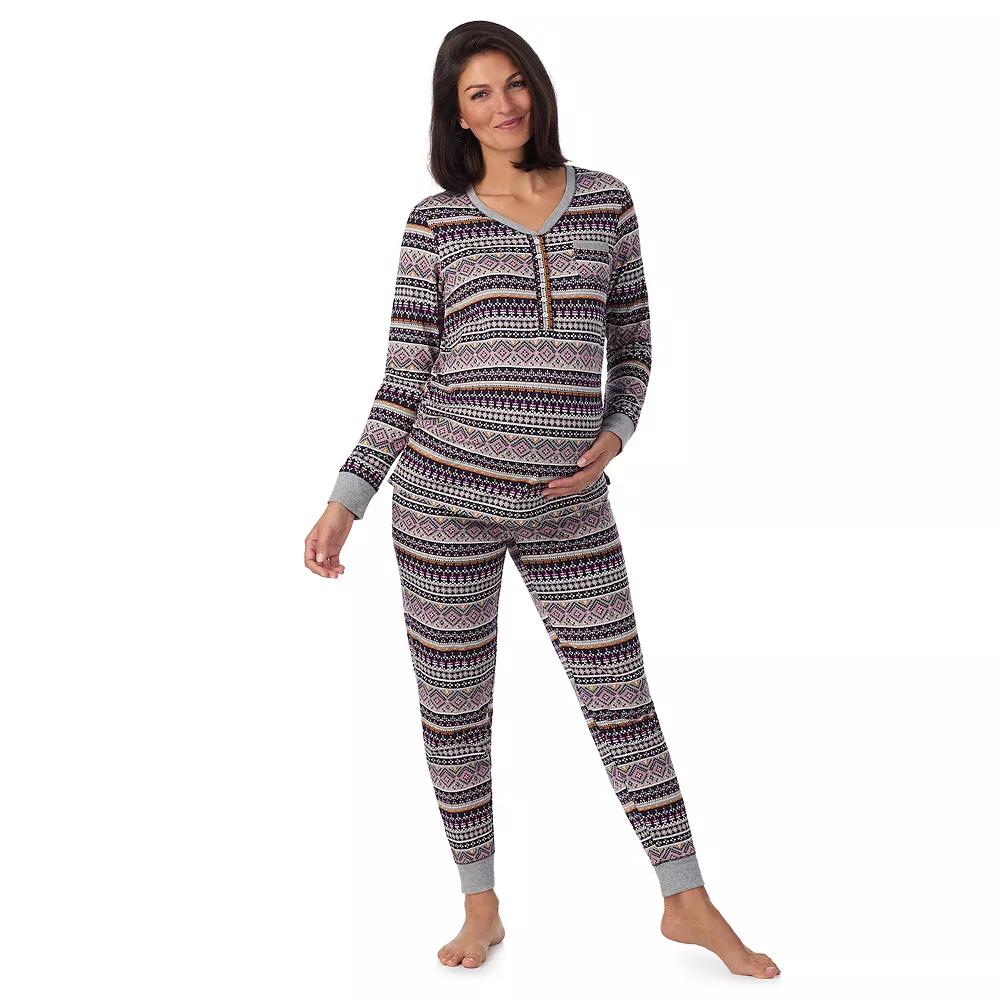 Keep it casual and comfy with this maternity pajama set from Cuddl Duds. Keep it casual and comfy with this maternity pajama set from Cuddl Duds. FEATURES 2-piece set includes: henley top & pants Henley: 6-button placket, long sleeves, rounded hem, side seam ruching Pants: under-belly fitting elastic waistband, 2-pocket Soft & cozy jersey construction UnlinedFIT & SIZING 9-in leg. opening Midrise sits on the high hip Banded leg openingFABRIC & CARE Polyester, spandex Machine wash and tumble dry low Imported Size: S-Mat. Color: Mint Dogs. Gender: female. Age Group: adult.