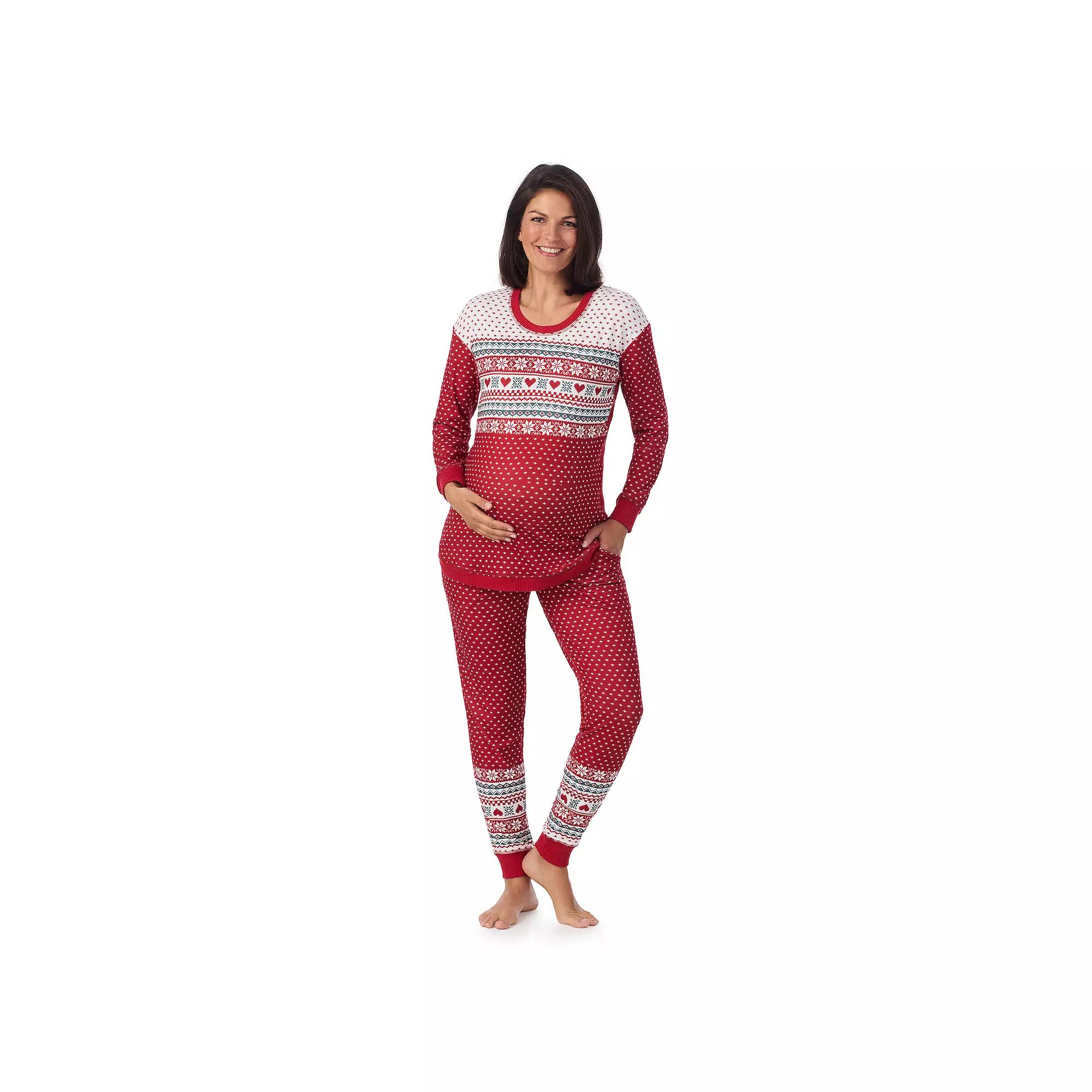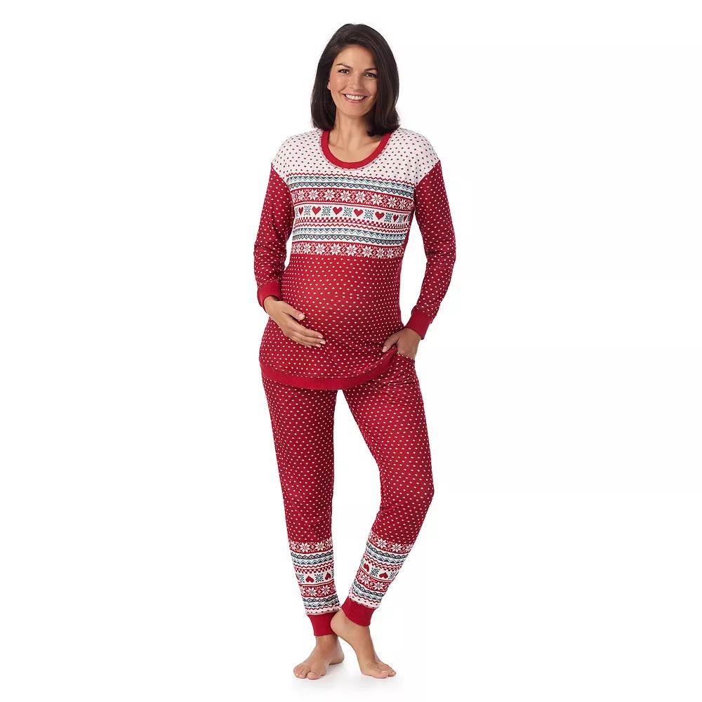 Cozy up in the casual comfort of these womens maternity pajamas from Cuddl Duds. Click on this INTIMATES & SLEEPWEAR GUIDE to find the perfect fit and more! Cozy up in the casual comfort of these womens maternity pajamas from Cuddl Duds. Click on this INTIMATES & SLEEPWEAR GUIDE to find the perfect fit and more! FEATURES 2-piece set includes: top & pants Top: crewneck, long drop-shoulder sleeves, ribbed cuffs, tulip hem, kangaroo pocket Pants: no closure - pull-on styling, ribbed cuffs, 2 pockets Unlined Sweater knit constructionFIT & SIZING Relaxed fit Low rise sits on the hip Covered elastic waistband 29-in. inseam Banded leg opening 10-in. leg openingFABRIC & CARE Polyester, spandex Machine wash and tumble dry low Imported Size: M-Mat. Color: Red Border Fairisle. Gender: female. Age Group: adult.
