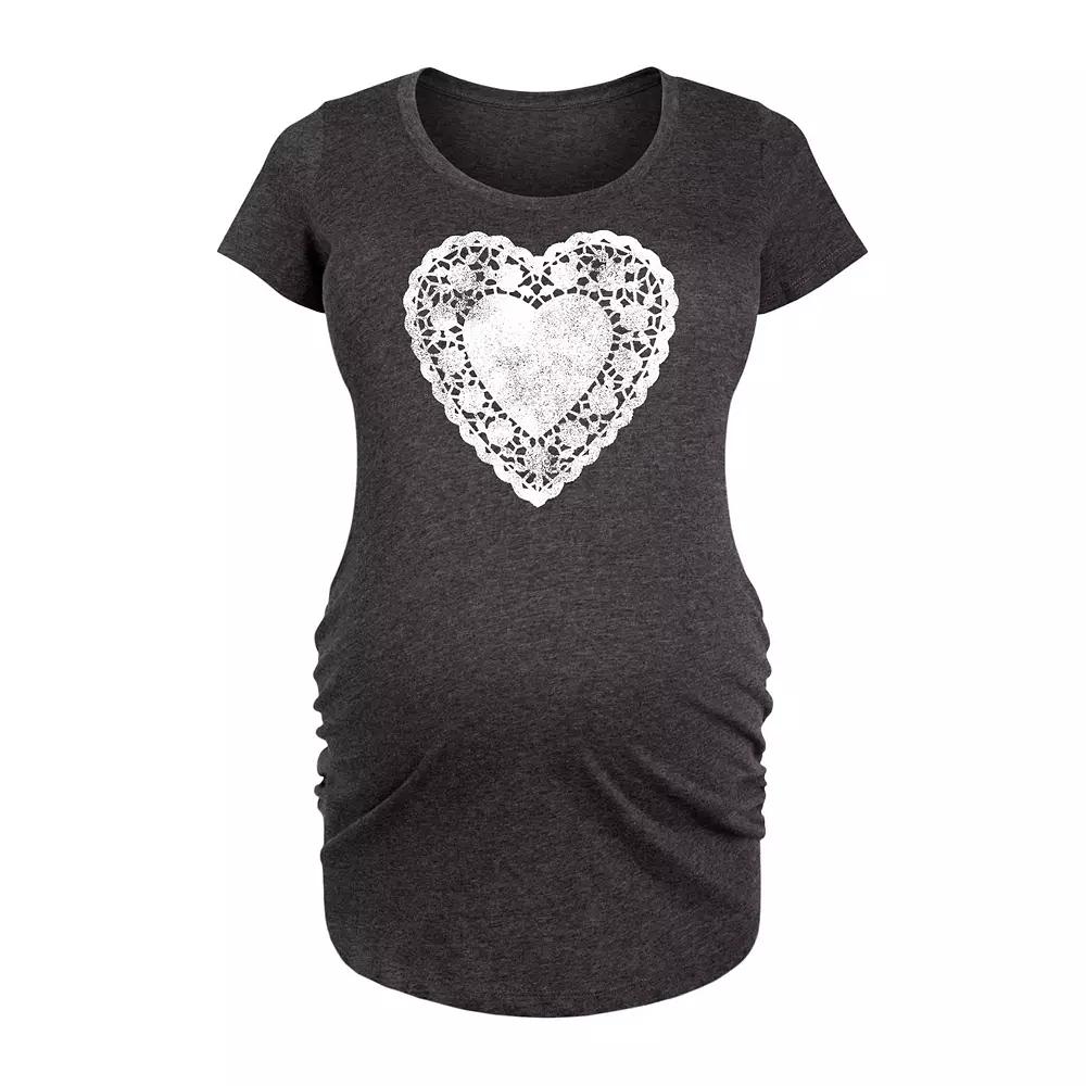 Shell love the look and feel of this Maternity Doily Heart Graphic Tee. Shell love the look and feel of this Maternity Doily Heart Graphic Tee. FEATURES Scoopneck Short sleeves Ruched sidesFIT & SIZING Fitted 31 1/2-in. length from shoulder to hemFABRIC & CARE Cotton, polyester Machine wash ImportedSUSTAINABILITY FEATURES bluesign Certified Size: Xxl. Color: Dark Grey. Gender: female. Age Group: adult.