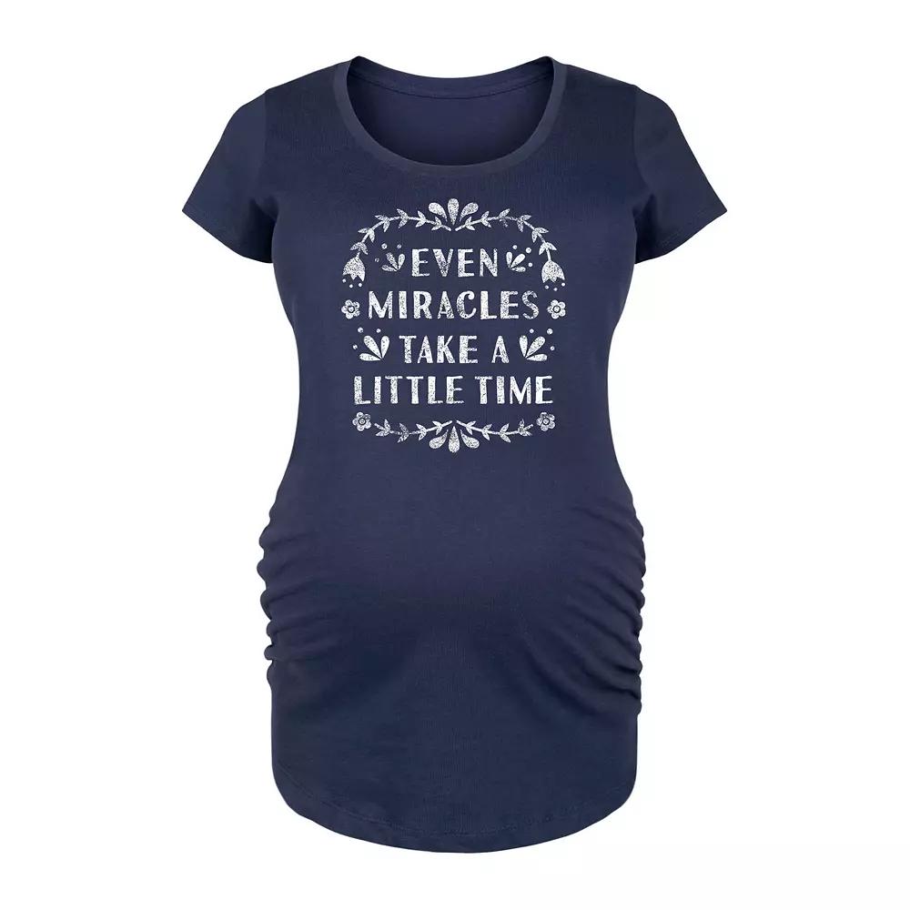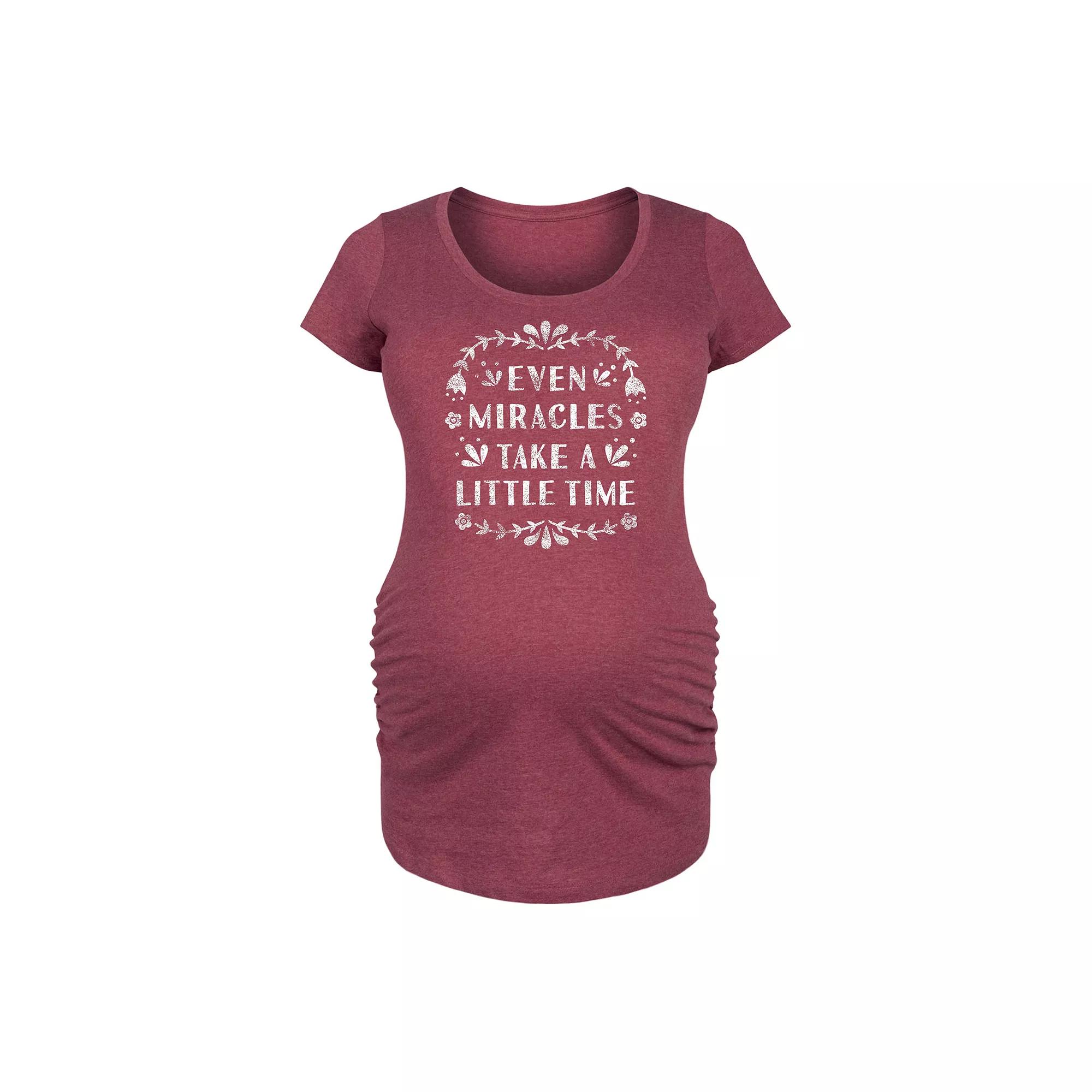 She will love showing off her style with this Maternity Even Miracles Take a Little Time Graphic Tee. FEATURES Short sleeves ScoopneckFABRIC & CARE Solid Color: Cotton ; Heather Colors: Cotton/Polyester Machine wash Imported Size: S-Mat. Color: Red. Gender: female. Age Group: adult.