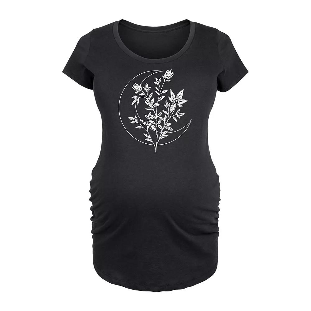 Black Floral Crescent Maternity Scoop Neck Tee - Women. A flattering scoop neck fit with ruched details make this graphic tee a maternity wardrobe staple. Side ruched detail100% cottonMachine wash; tumble dryImported, screen printed in the USA