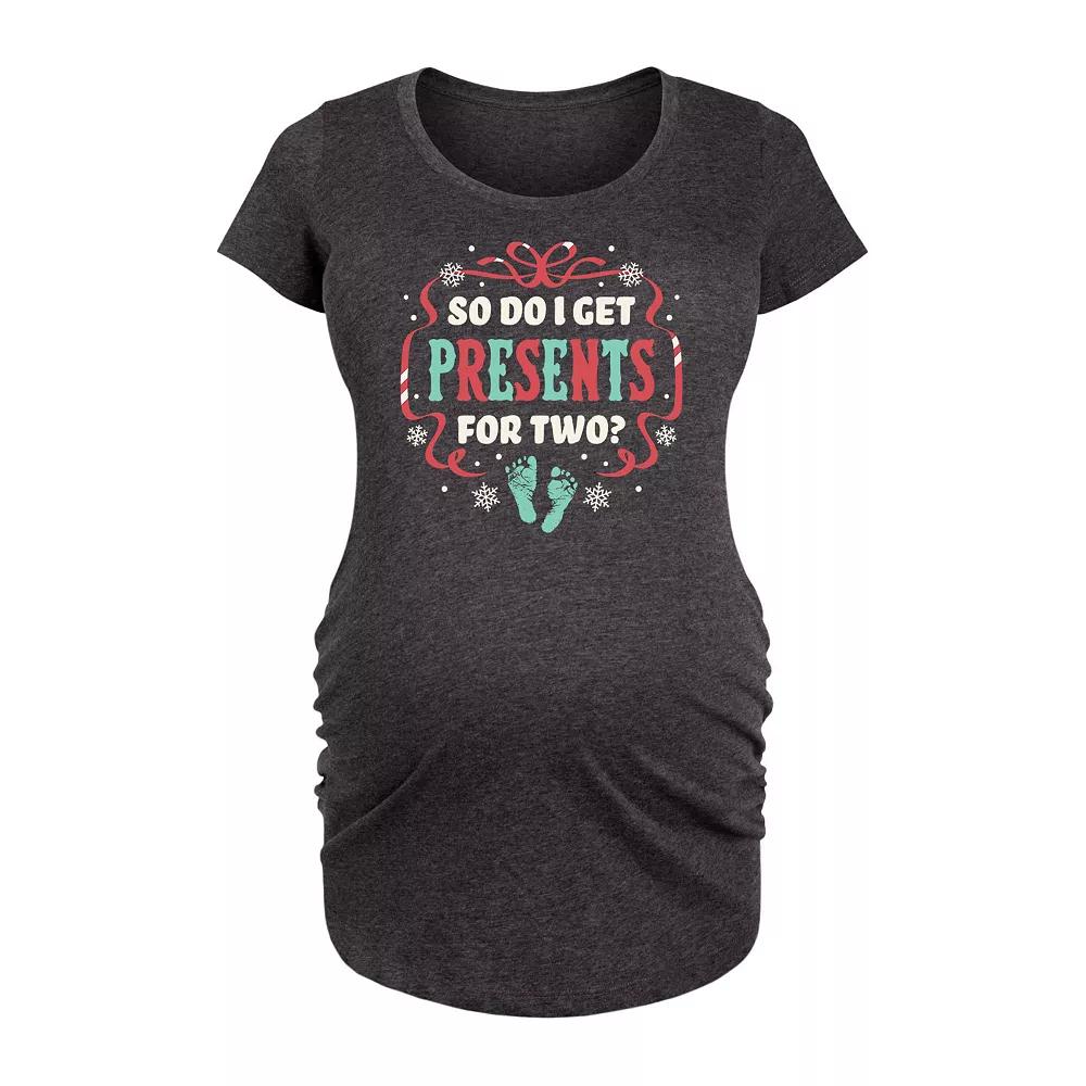 Shell love the look and feel of this Maternity Presents For Two Graphic Tee. Shell love the look and feel of this Maternity Presents For Two Graphic Tee. FEATURES Crewneck Short SleevesFIT & SIZING 30 1/2-in. length from shoulder to hemFABRIC & CARE Solid: Cotton Heather: Cotton/Polyester Machine wash Imported Size: S-Mat. Color: Dark Grey. Gender: female. Age Group: adult.