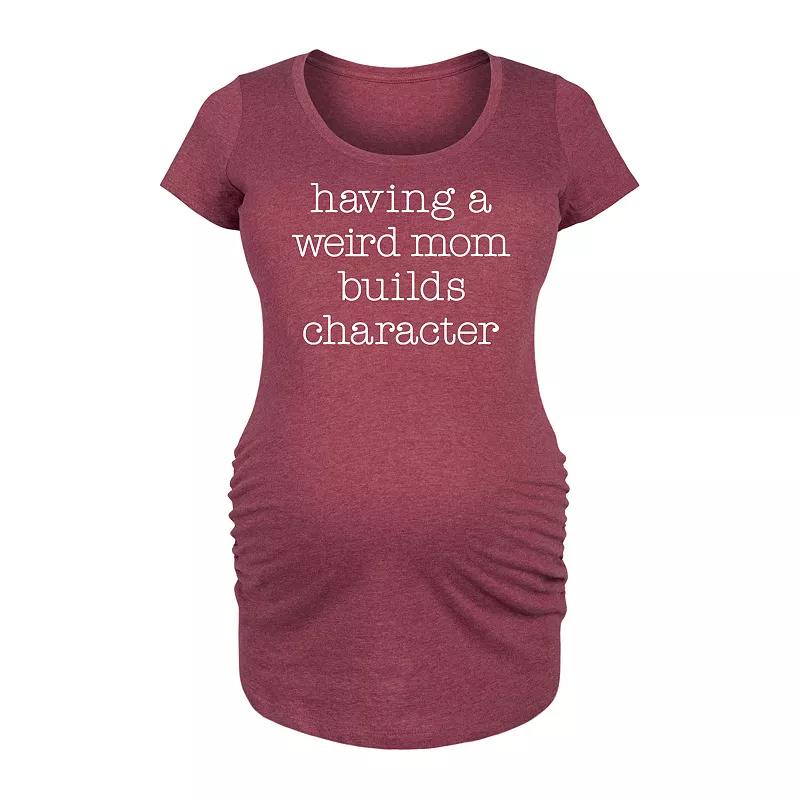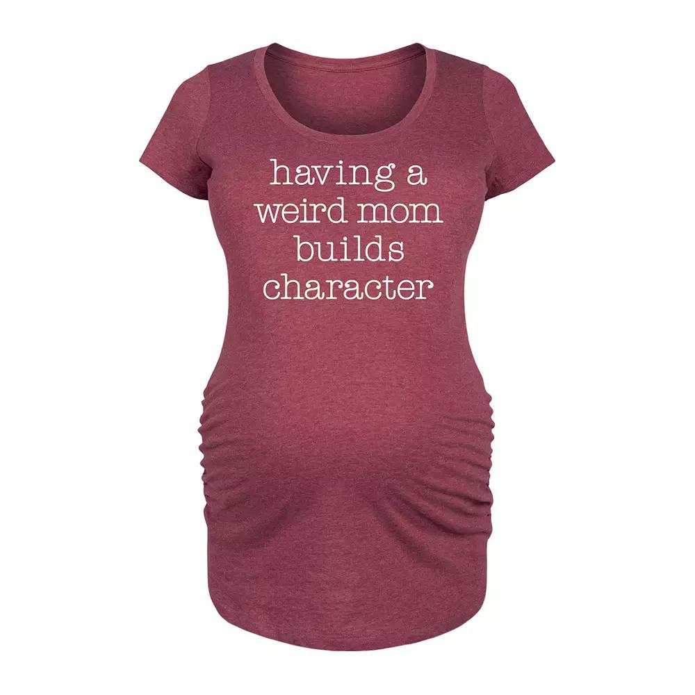 She will love showing off her style with this Maternity Having A Weird Mom Builds Character Graphic Tee. FEATURES Ruched sides Short sleeves ScoopneckFIT & SIZING Fitted 31 1/2-in. length from shoulder to hemFABRIC & CARE Solid Colors: Cotton ; Heather Colors: Cotton/Polyester Machine wash Imported Size: S-Mat. Color: Med Red. Gender: female. Age Group: adult.