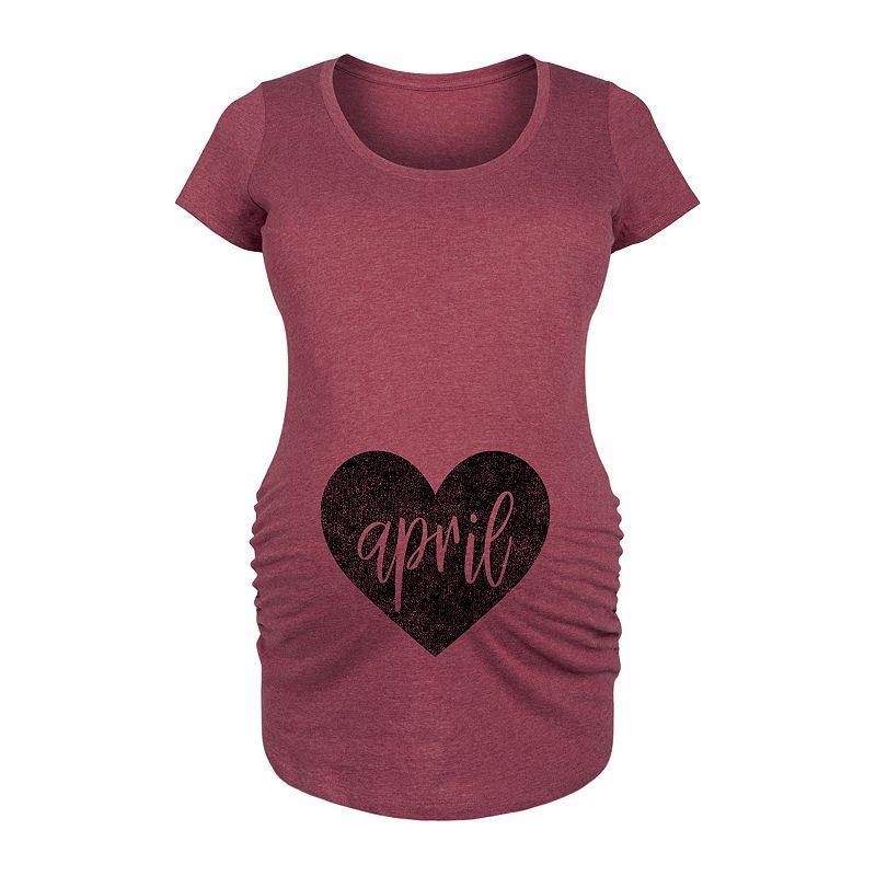 She will love showing off her style with this Maternity Heart April Graphic Tee. FEATURES Ruched sides Short sleeves ScoopneckFIT & SIZING Fitted 31 1/2-in. length from shoulder to hemFABRIC & CARE Solid Colors: Cotton ; Heather Colors: Cotton/Polyester Machine wash Imported Size: XL-Mat. Color: Med Red. Gender: female. Age Group: adult.