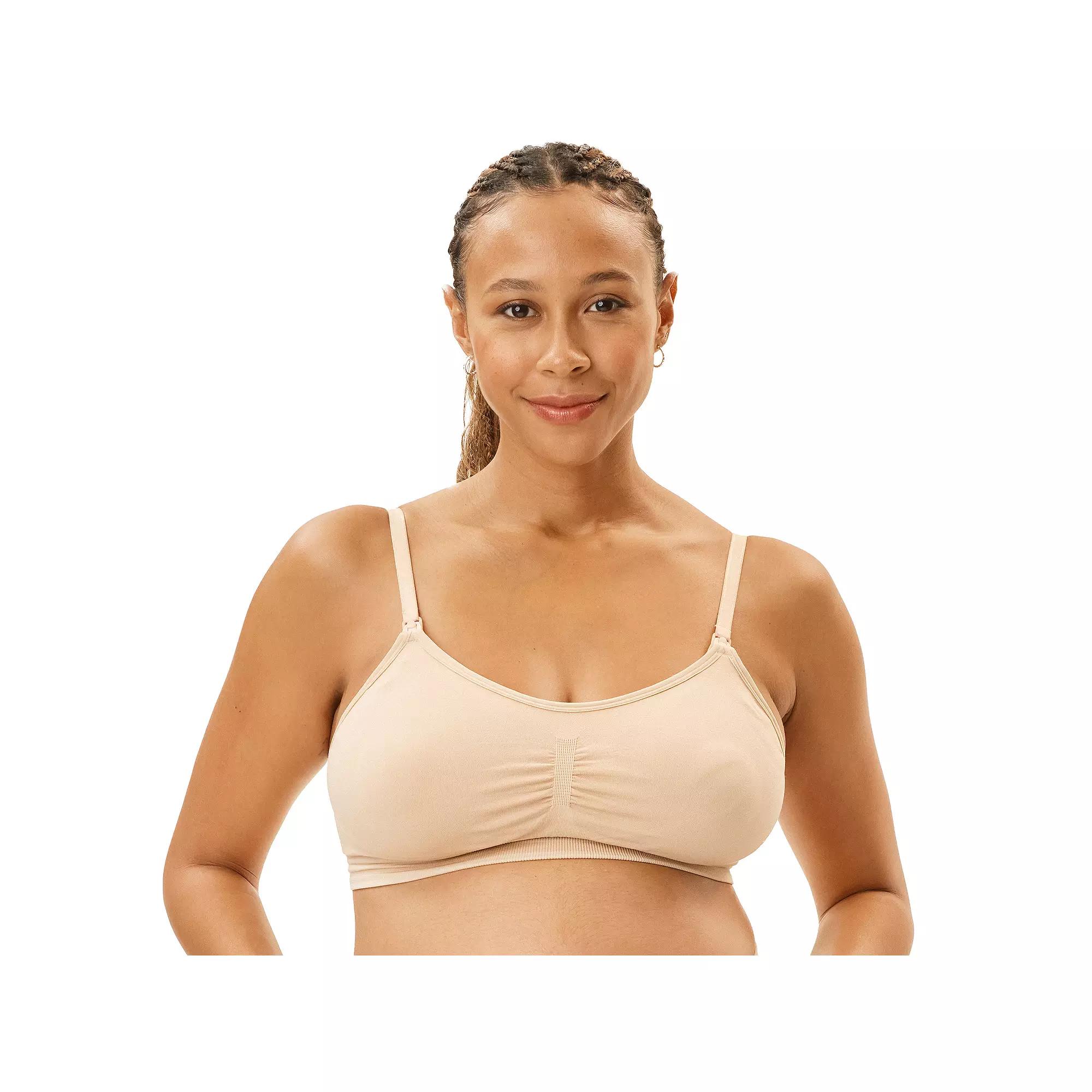 The comfy Motherhood Seamless Nursing and Pumping Bra offers the support of a traditional bra with the comfort of a bralette, complete with nursing clips for easy access and inner panel with elasticized loops for hands-free pumping, making it a must-have. Click this MATERNITY & NURSING GUIDE to find the perfect fit and more!FEATURES Removable pads Nursing clips Tag freeFIT & SIZING Bralette stylingLIFT & LINING Medium lift Wireless Lightly padded cupsSTRAPS & HOOKS Soft, adjustable straps with nursing clips for easy nursing access Hook-and-eye closure 4 hook columns 3 hook rowsFABRIC & CARE Nylon, spandex Machine wash and tumble dry low Imported Size: XL-Mat. Color: Oat. Gender: female. Age Group: adult.
