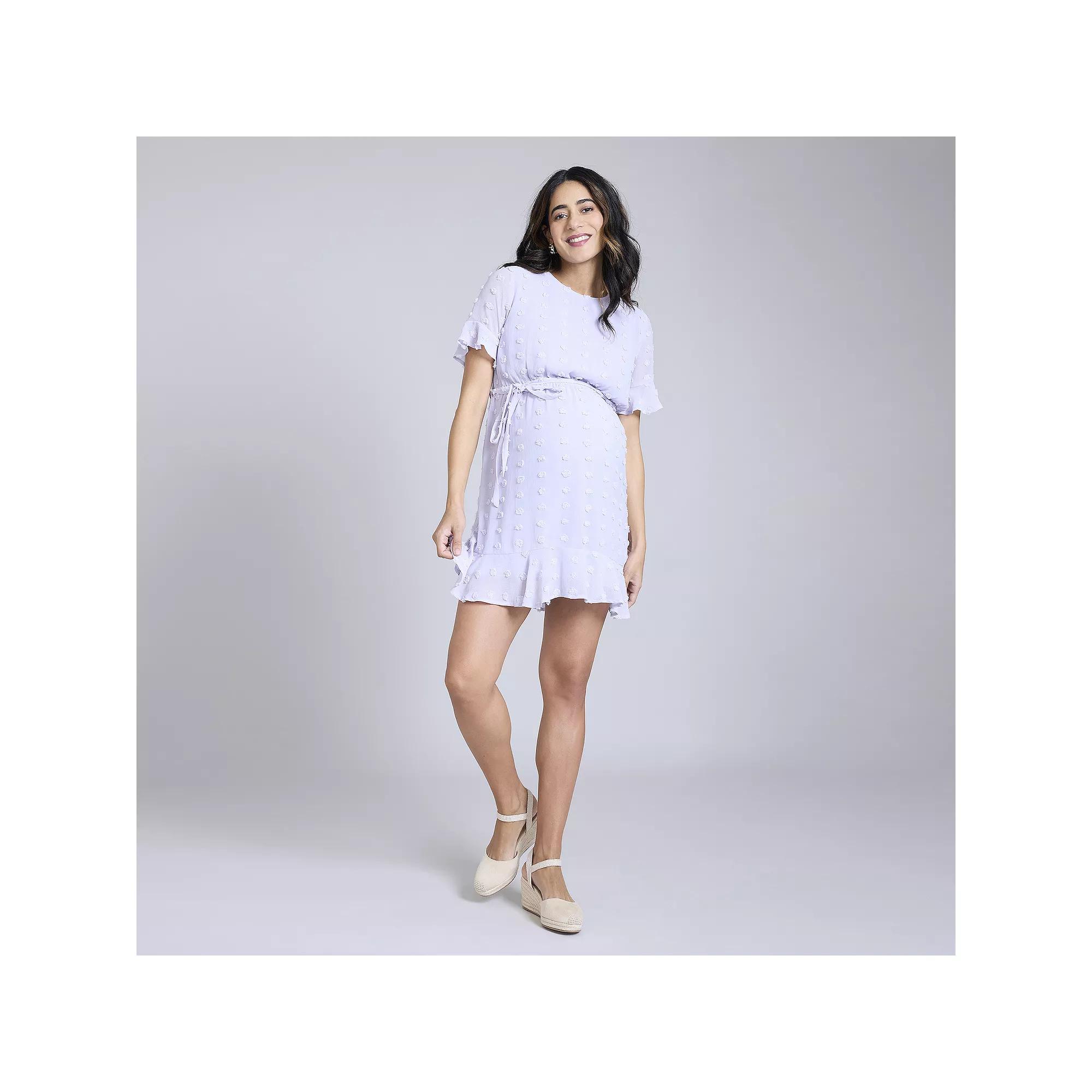 This Motherhood short sleeve dress features an adjustable coordinated waistbelt and elastic waistband provide comfort and ease of adjustment during pregnancy and postpartum. Click this MATERNITY & NURSING GUIDE to find the perfect fit and more!This Motherhood short sleeve dress features an adjustable coordinated waistbelt and elastic waistband provide comfort and ease of adjustment during pregnancy and postpartum. Click this MATERNITY & NURSING GUIDE to find the perfect fit and more!FEATURES Loose and flowy tiered design offers a comfortable fit during pregnancy and postpartum Babydoll silhouette Crewneck Cap ruffle sleeves Button closure Ruffled hem Coordinating belt UnlinedFIT & SIZING Flowy elegant fit 36-in. length from shoulder to hem Mini length hits at the thigh Elastic waistbandFABRIC & CARE Polyester Machine wash delicate and tumble dry low Imported Size: XL-Mat. Color: Thistle. Gender: female. Age Group: adult.