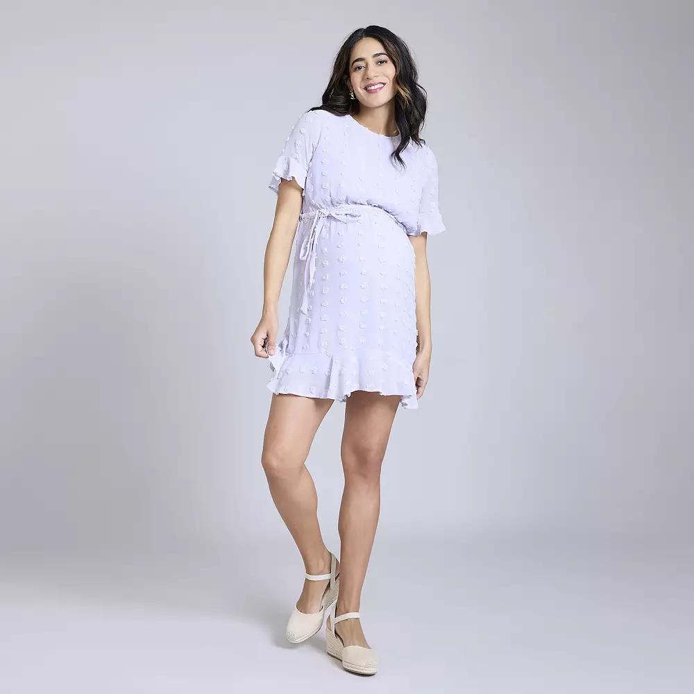 This Motherhood short sleeve dress features an adjustable coordinated waistbelt and elastic waistband provide comfort and ease of adjustment during pregnancy and postpartum. Click this MATERNITY & NURSING GUIDE to find the perfect fit and more!This Motherhood short sleeve dress features an adjustable coordinated waistbelt and elastic waistband provide comfort and ease of adjustment during pregnancy and postpartum. Click this MATERNITY & NURSING GUIDE to find the perfect fit and more!FEATURES Loose and flowy tiered design offers a comfortable fit during pregnancy and postpartum Babydoll silhouette Crewneck Cap ruffle sleeves Button closure Ruffled hem Coordinating belt UnlinedFIT & SIZING Flowy elegant fit 36-in. length from shoulder to hem Mini length hits at the thigh Elastic waistbandFABRIC & CARE Polyester Machine wash delicate and tumble dry low Imported Size: XXL-MAT. Color: Thistle. Gender: female. Age Group: adult.