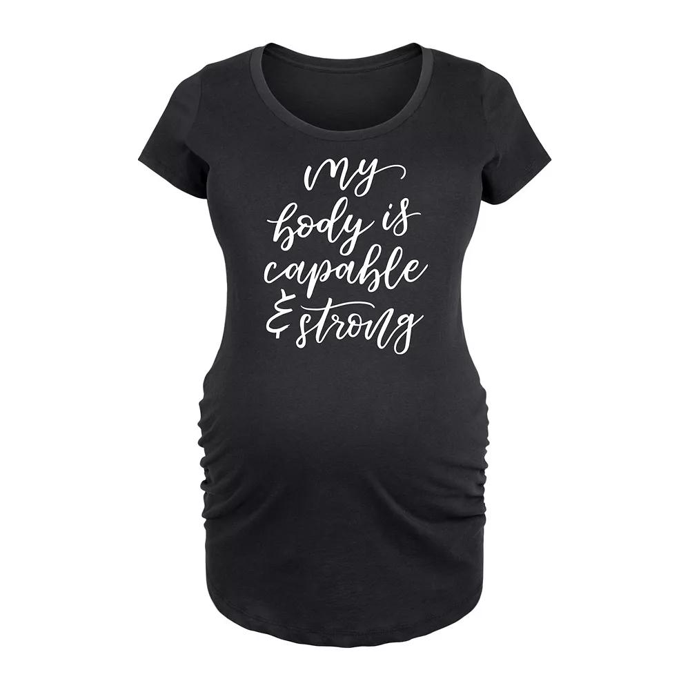 She will love showing off her style with this Maternity My Body Is Capable And Strong Graphic Tee. FEATURES Ruched sides Short sleeves ScoopneckFIT & SIZING Fitted 31 1/2-in. length from shoulder to hemFABRIC & CARE Solid Colors: Cotton ; Heather Colors: Cotton/Polyester Machine wash Imported Size: XXL-MAT. Color: Black. Gender: female. Age Group: adult.