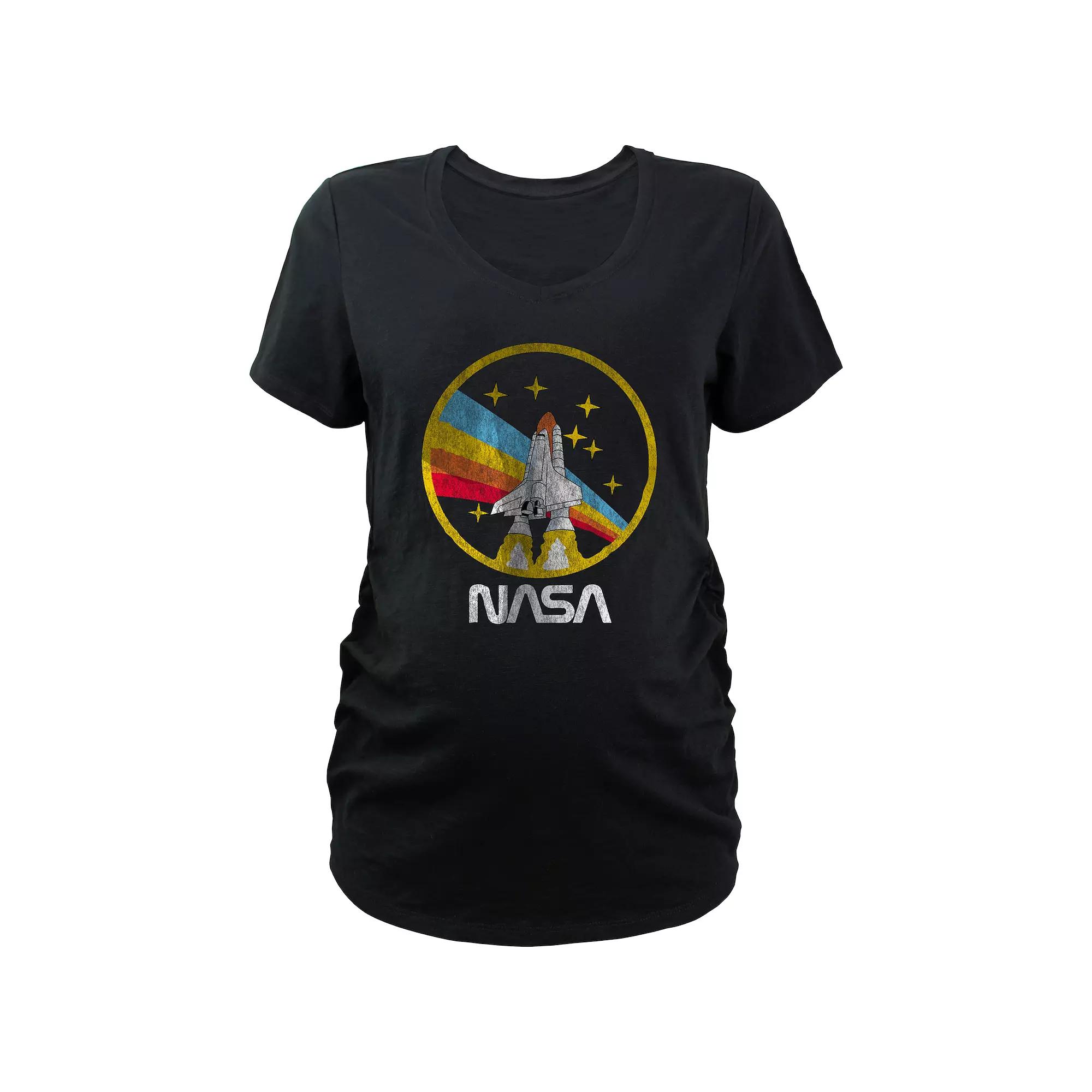 Shell love the look and feel of this Maternity NASA Shuttle Rainbow Galaxy Stamp Graphic Tee. Click this MATERNITY & NURSING GUIDE to find the perfect fit and more! FEATURES Short sleeves V-neckFABRIC & CARE Cotton, polyester Machine wash Imported Size: L-Mat. Color: Black. Gender: female. Age Group: adult.