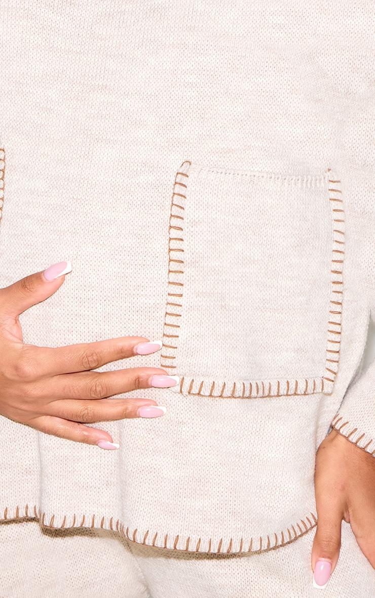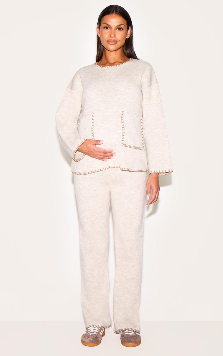 All Maternity garments are true to standard sizes and you should choose your usual size. Consider this your go-to for elevated comfort during your pregnancy. This oatmeal knitted sweater offers a sophisticated take on everyday dressing, crafted with thoughtful contrast stitch detailing and practical pockets. The subtly textured knit provides warmth without sacrificing style. For a coordinated yet effortless look, pair it with tailored pants from our bottoms collection – think wide-leg wool blends or refined corduroys – and elevate with minimalist jewelry. Length approx 48cm/19inch (Based on a sample size S) Model wears size SModel Height - 5ft 7inchp]:!mb-4inch>Category: KnitwearProduct type: SweaterColor: Oatmeal Material: KnitSleeves: LongOccasion: Day
