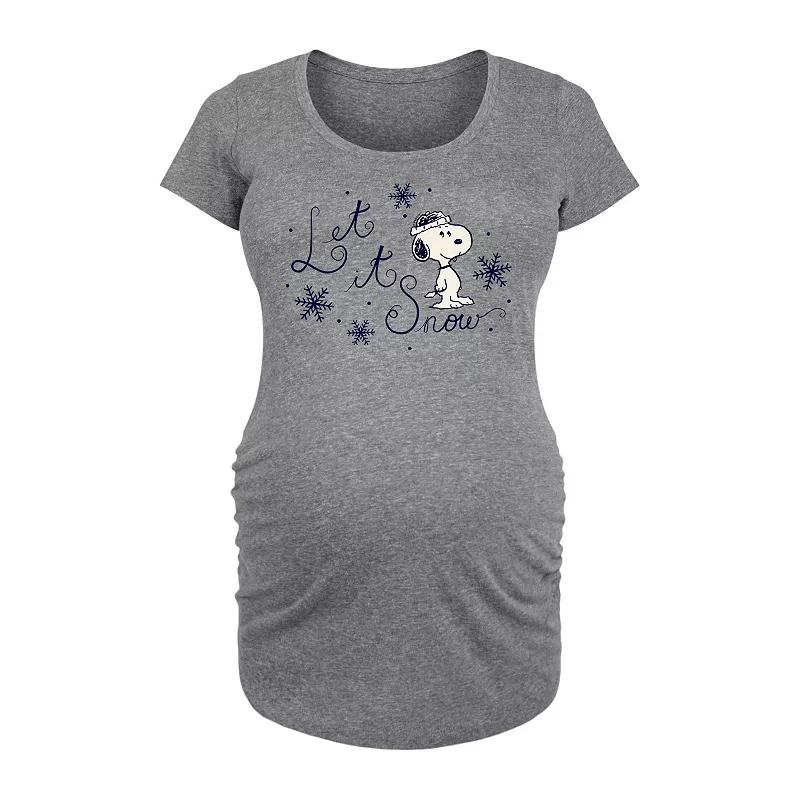Shell love the look and feel of this Maternity Peanuts Let It Snow Graphic Tee. Shell love the look and feel of this Maternity Peanuts Let It Snow Graphic Tee. FEATURES Crewneck Short Sleeves Ruched SidesFABRIC & CARE Solid: Cotton Heather: Cotton/Polyester Machine wash Imported Size: M-Mat. Color: Heather Gray. Gender: female. Age Group: adult.