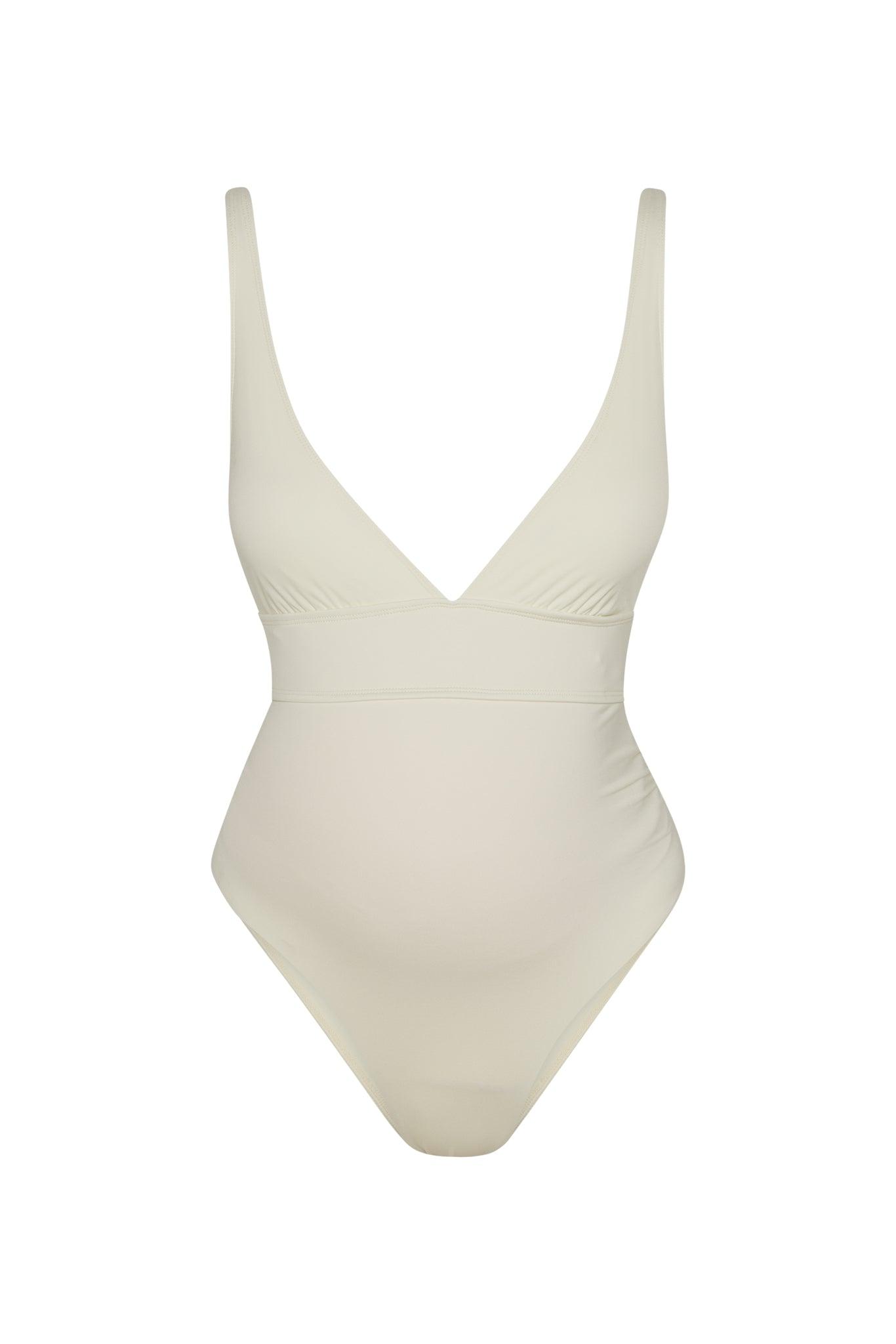 Ultimate vacation one piece The Portofino One Piece is complemented by a structured support panel under the bust featuring adjustable straps for extra support and a high leg — made to accentuate every figure. Features:Deep V necklineSupportive waist panelAdjustable shoulder strapsModerate bottom coverageDouble-lined*Note, that ivory is a soft hue that some have found to be sheer when wetCare:Click here for our care tips.If you have any questions about sizing, please email us at