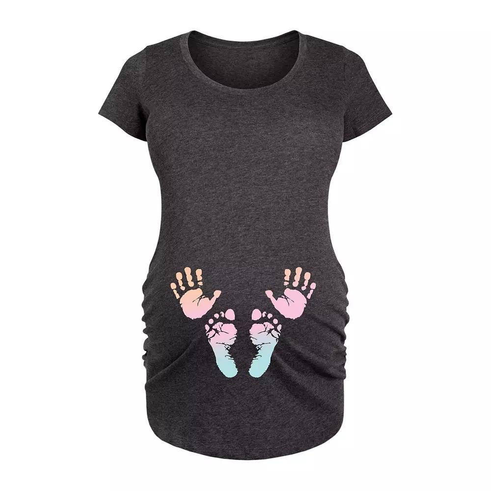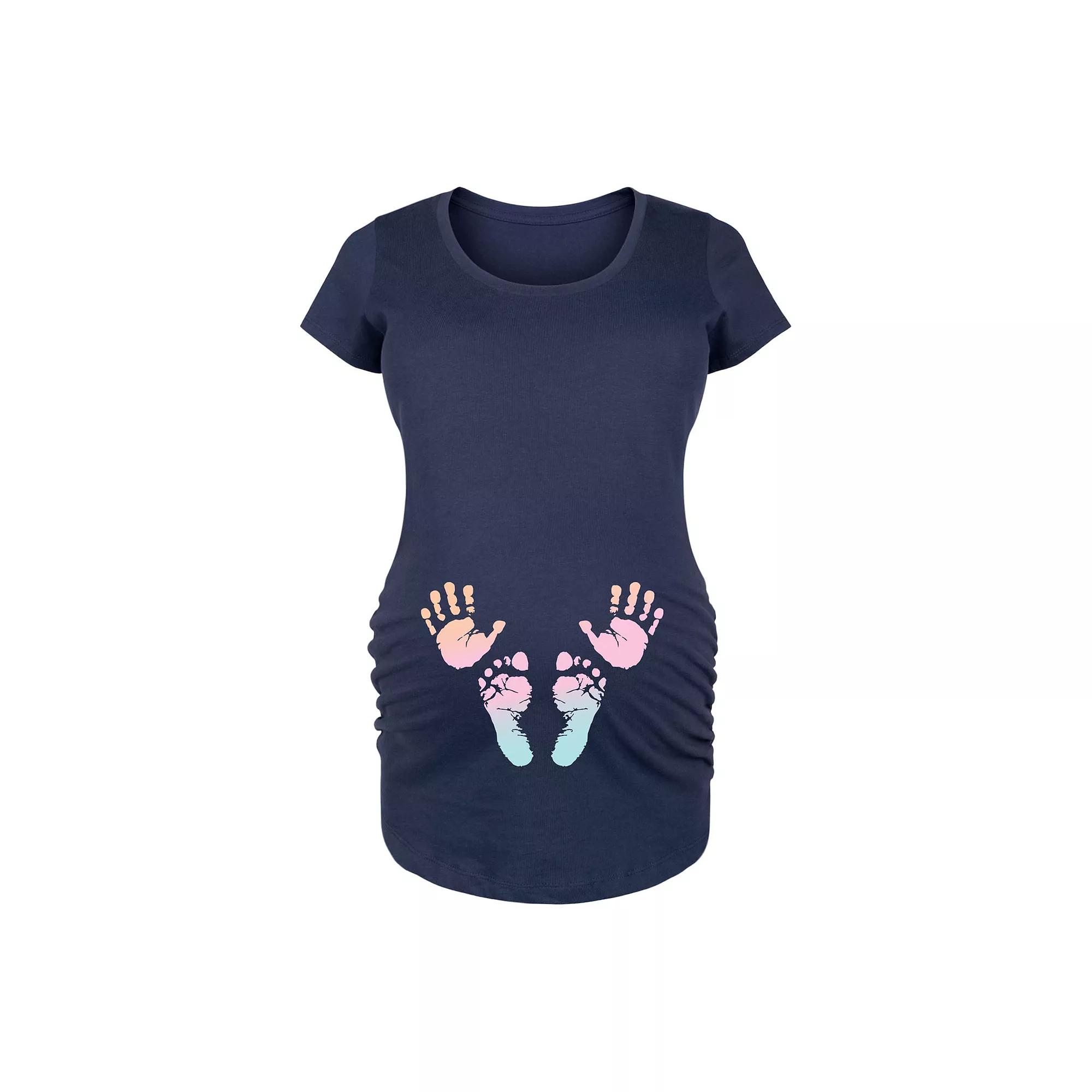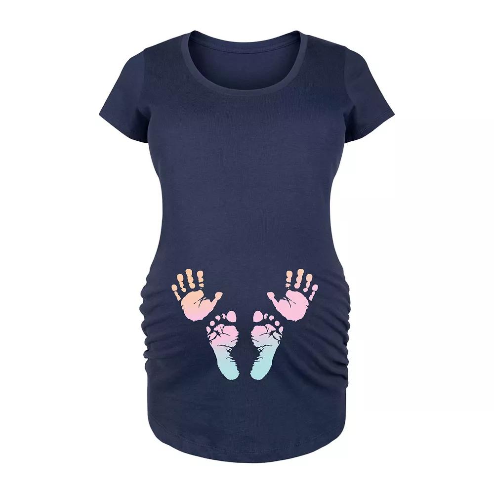 She will love showing off her style with this Maternity Rainbow Handprints Footprints Graphic Tee. FEATURES Short sleeves ScoopneckFABRIC & CARE Solid Colors: Cotton ; Heather Colors: Cotton/Polyester Machine wash Imported Size: S-Mat. Color: Navy. Gender: female. Age Group: adult.