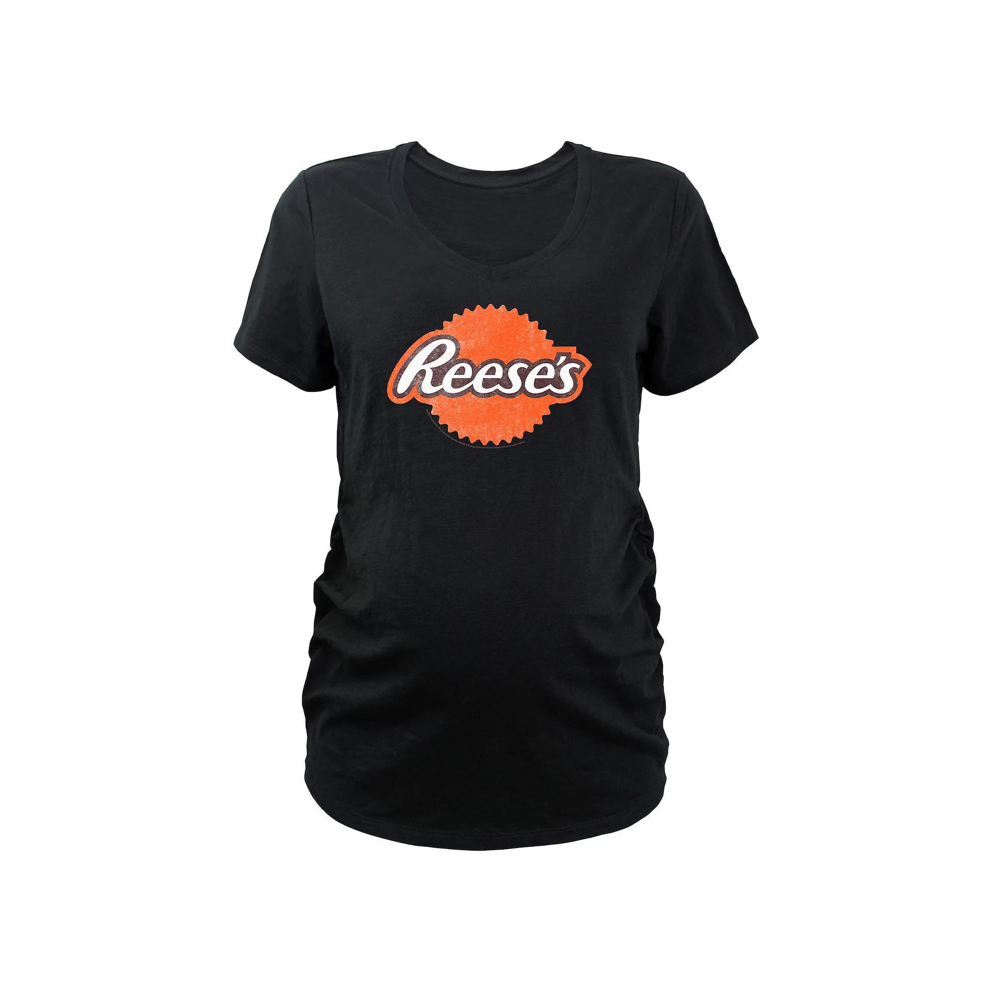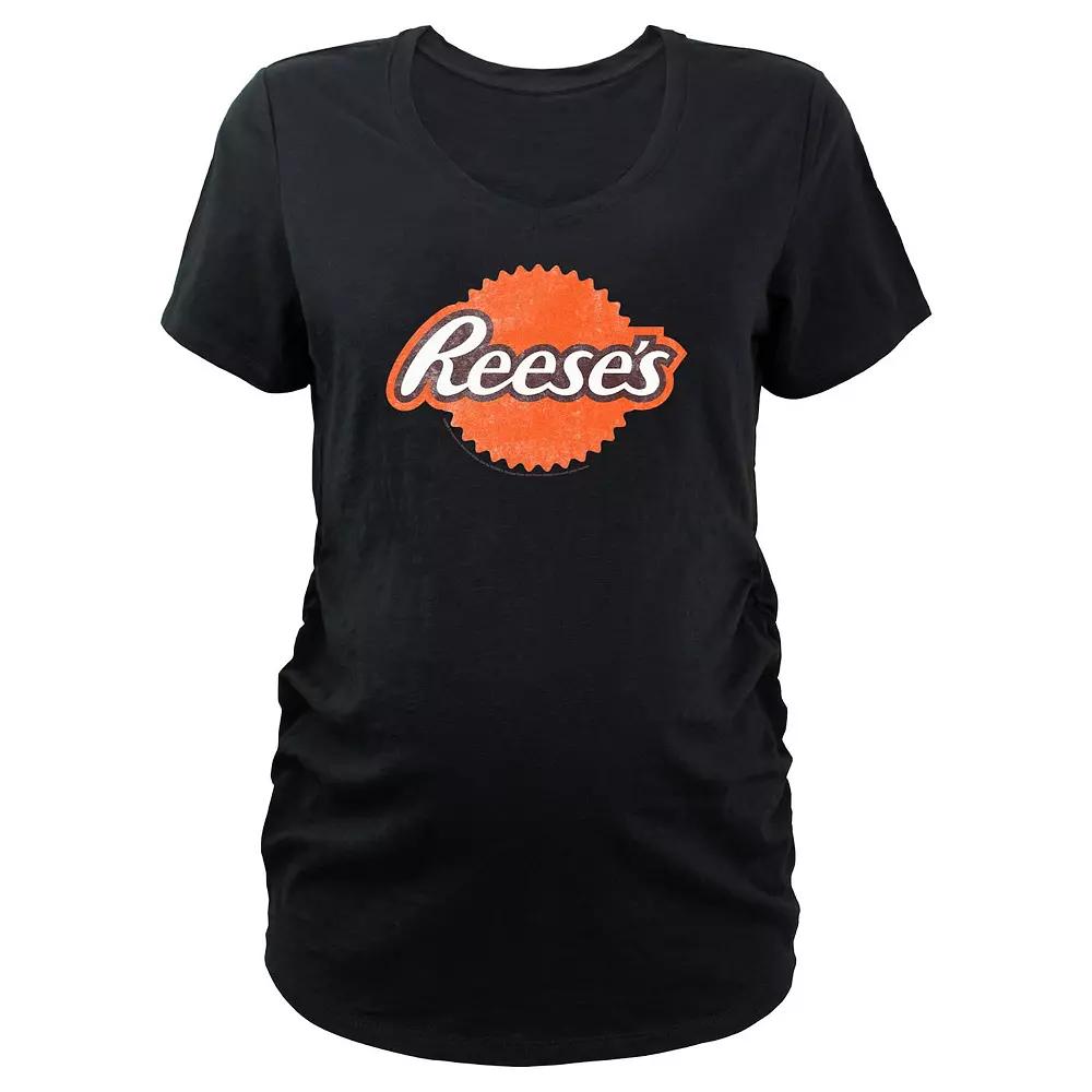 Shell love the look and feel of this Maternity Reeses Distressed Style Logo V-Neck Graphic Tee. FEATURES V-neck Short SleevesFABRIC & CARE Cotton/Polyester Machine wash Imported Size: XS-MAT. Color: Black. Gender: female. Age Group: adult.