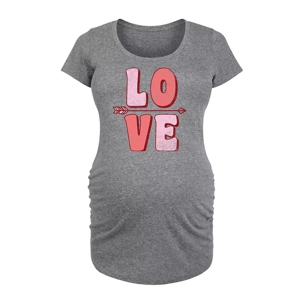 Youll love this Maternity Retro Love And Arrow Graphic Tee. Youll love this Maternity Retro Love And Arrow Graphic Tee. FEATURES Scoopneck Short sleeves Ruched sidesFIT & SIZING Fitted 31.5-in. length from shoulder to hemFABRIC & CARE solid; cotton, heather; cotton, polyester Machine wash Imported Size: Medium. Color: Med Grey. Gender: female. Age Group: adult.