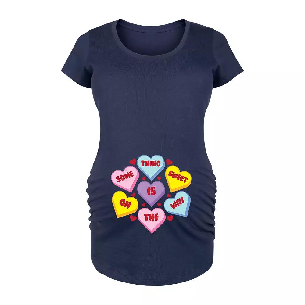 She will love showing off her style with this Maternity Something Sweet Candy Hearts Graphic Tee.FEATURES Short sleeves ScoopneckFABRIC & CARE Light Gray and Heather Colors: Cotton/Polyester ; Solid Colors: Cotton Machine wash Imported Size: XXL-MAT. Color: Navy. Gender: female. Age Group: adult.