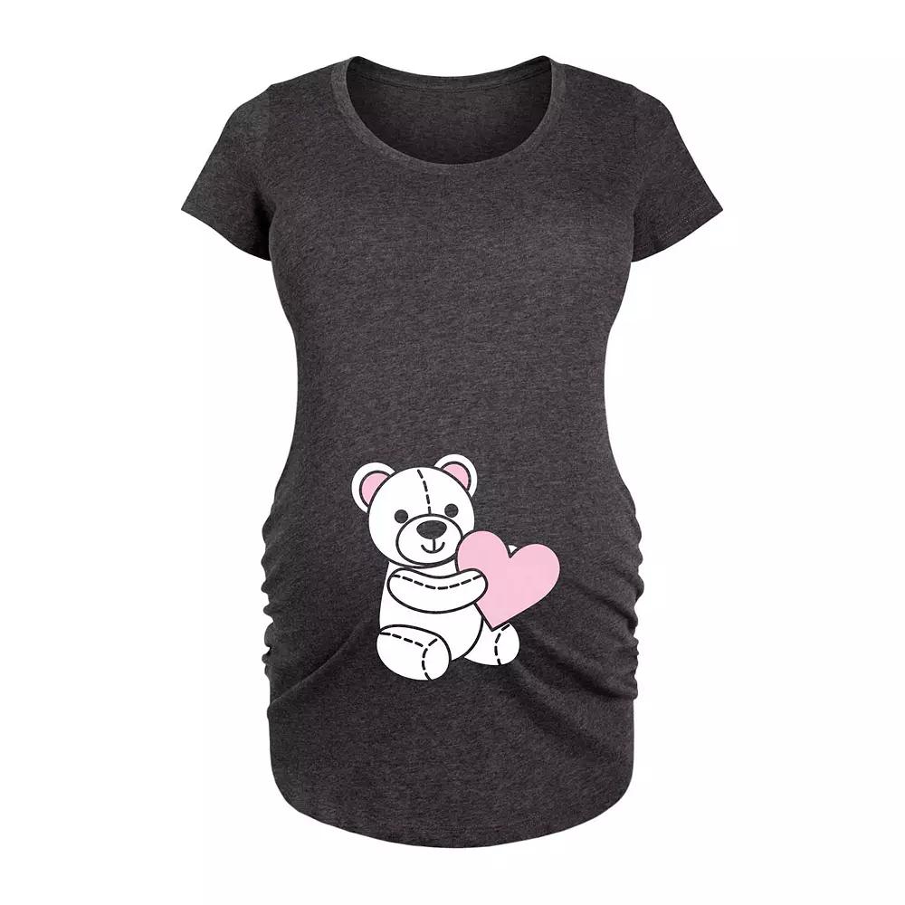 Heather Charcoal & Pink Teddy Bear Maternity Scoop Neck Tee - Women. Soft cotton-blend tee featuring a fun graphic and side ruched detail to give your bump room to grow. Side ruched detail50% cotton / 50% polyesterMachine wash; tumble dryImported, screen printed in the USA
