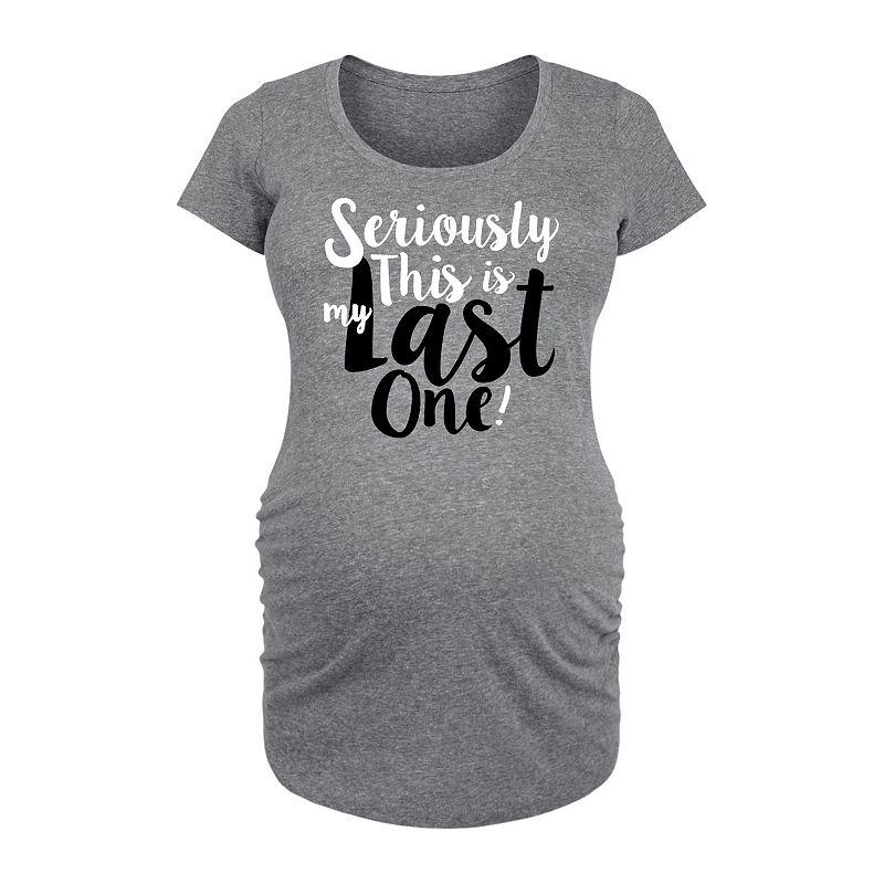 Heather Gray This Is My Last One Maternity Scoop Neck Tee - Women. Celebrate this special time with this witty graphic tee made from soft combed ringspun cotton and featuring side ruching for a bump-loving fit. Full graphic text: Seriously, this is my last one.Side ruched detail100% combed ringspun cottonMachine wash; tumble dryImported, screen printed in the USA