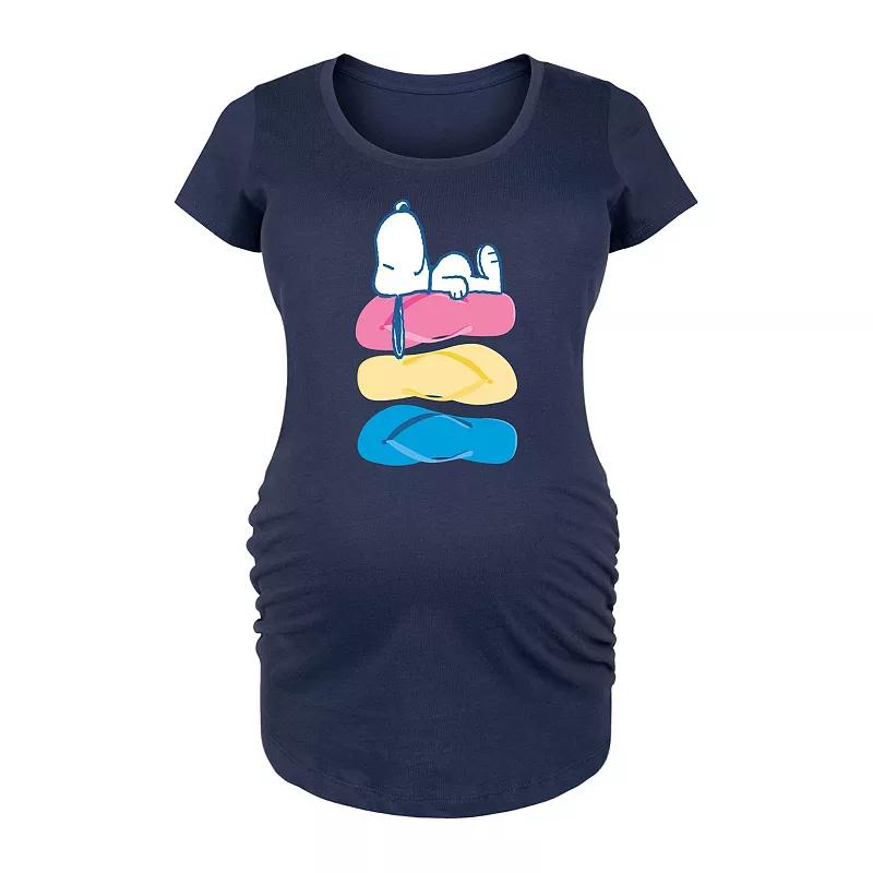 She will love showing off her style with this Maternity Peanuts Snoopy Flip Flops Graphic Tee. FEATURES Ruched Sides Short sleeves ScoopneckFABRIC & CARE Solid Color: Cotton ; Heather Colors: Cotton/Polyester Machine wash Imported Size: L-Mat. Color: Black. Gender: female. Age Group: adult.