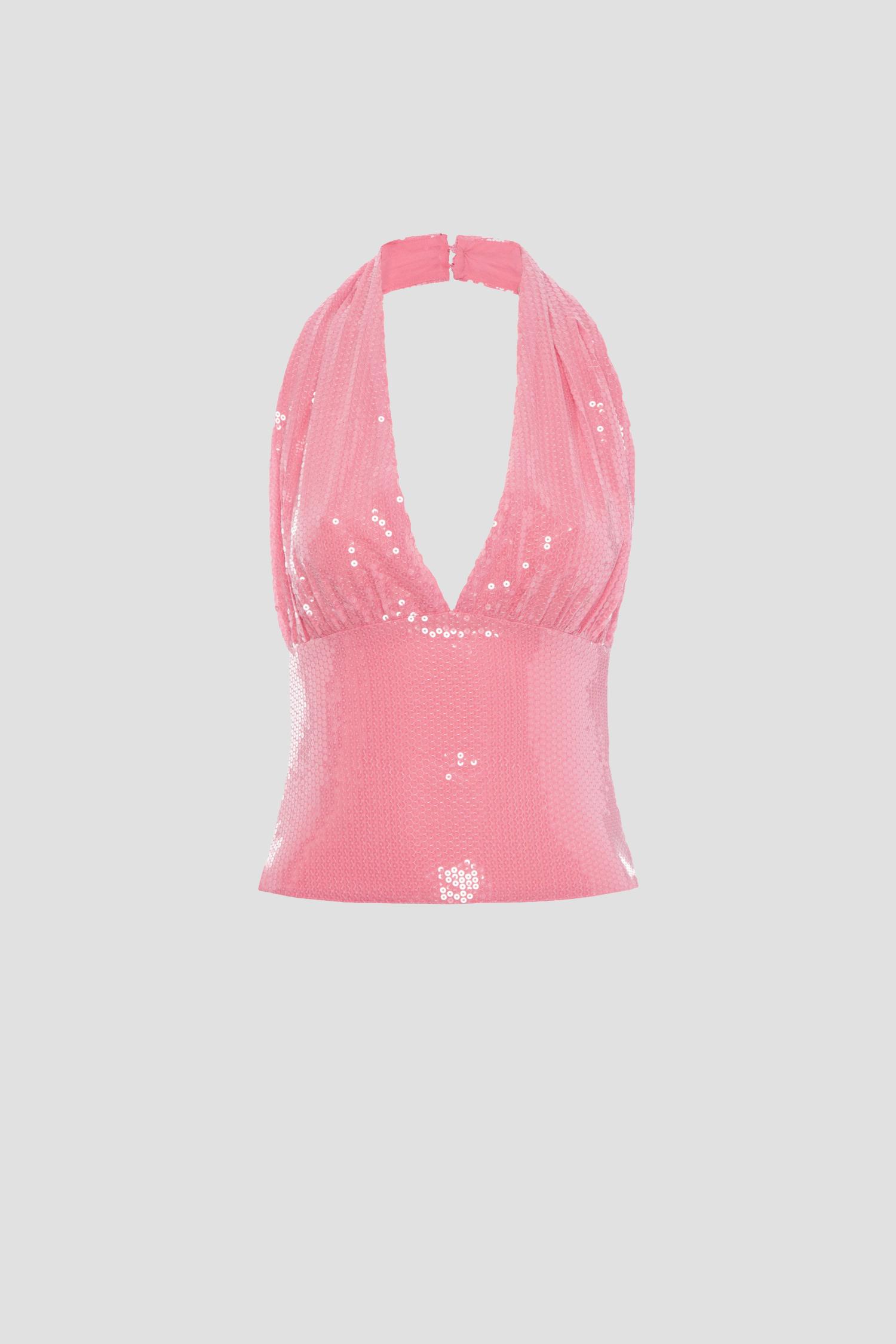 Turn heads with The Mathilde Top, a dazzling sequin top featuring a halter neckline and shimmering sequins that catch the light with every move. Pair it with sleek trousers or its matching sequin Micro Mini Skirt.