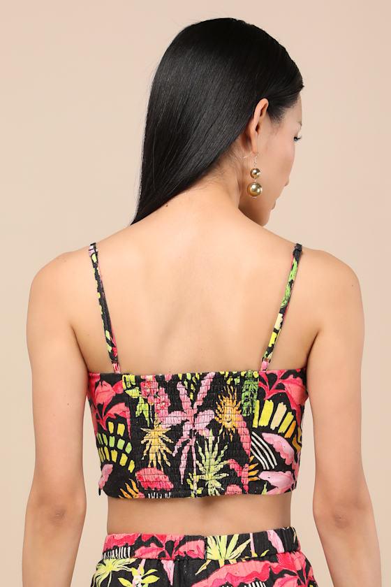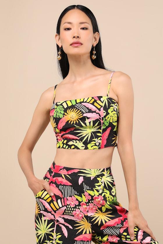 Summery, stylish, and easy to pack, this lil' tropical print cami is essential for the girl who loves to get away. Lightweight woven fabric shapes a flirty cropped silhouette with adjustable straps, princess-seam details, and smocking at back for the perfect fit. Hidden side zipper. Pair with the matching pants for a complete look!
