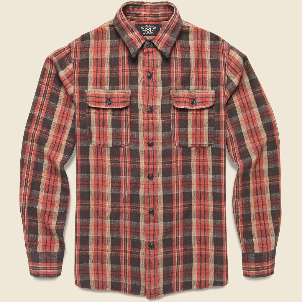 This Matlock Plaid Workshirt from Double RL is made from midweight cotton twill that’s woven with a yarn-dyed plaid pattern and has been heavily washed for a timeworn look and feel. It’s cut with a traditional dit that runs true to size and comes with a pair of chest pockets, a buttoned placket, and authentic runoff chainstitched construction at the side seams, which is based on workshirts from the 1920s and ‘30s.
