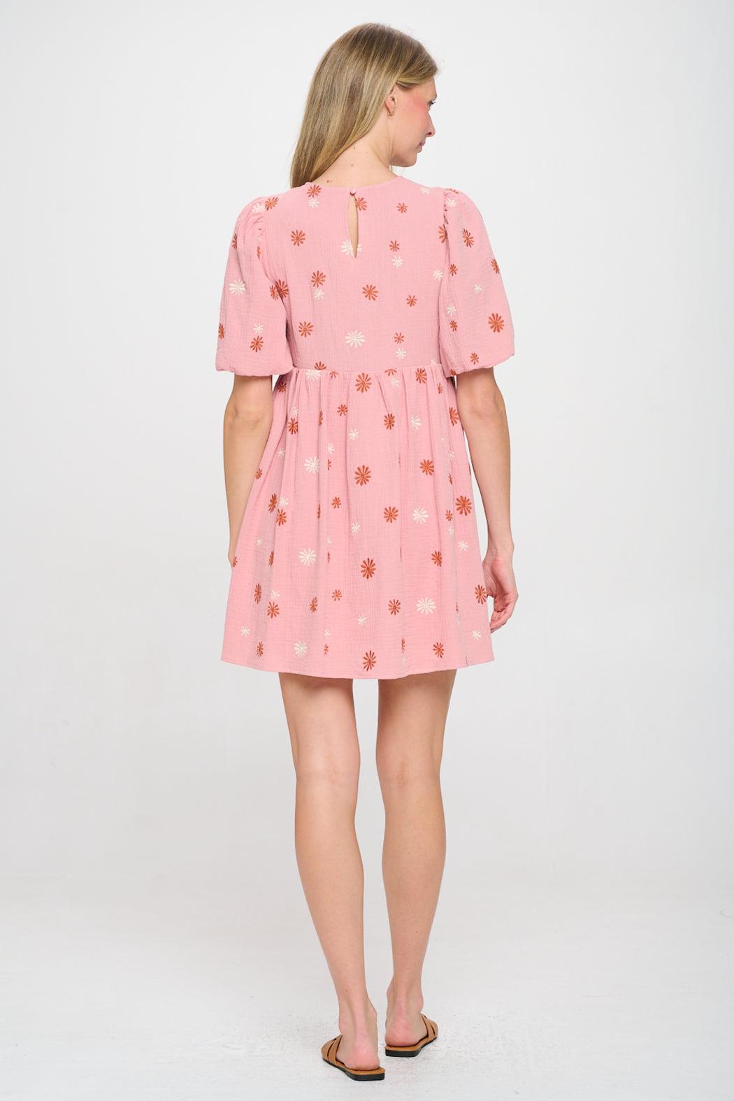 Discover the charm of effortless elegance with Meet Me in Santorini's pink floral embroidered dress. Perfect for a sunny day out or a casual brunch, this dress features delicate daisy embroidery on soft, breathable fabric. The puff sleeves add a touch of vintage flair, while the relaxed fit ensures comfort and style. Ideal for retailers seeking contemporary women's fashion that blends classic elements with modern trends. Elevate your boutique's collection with this must-have piece from Meet Me in Santorini.